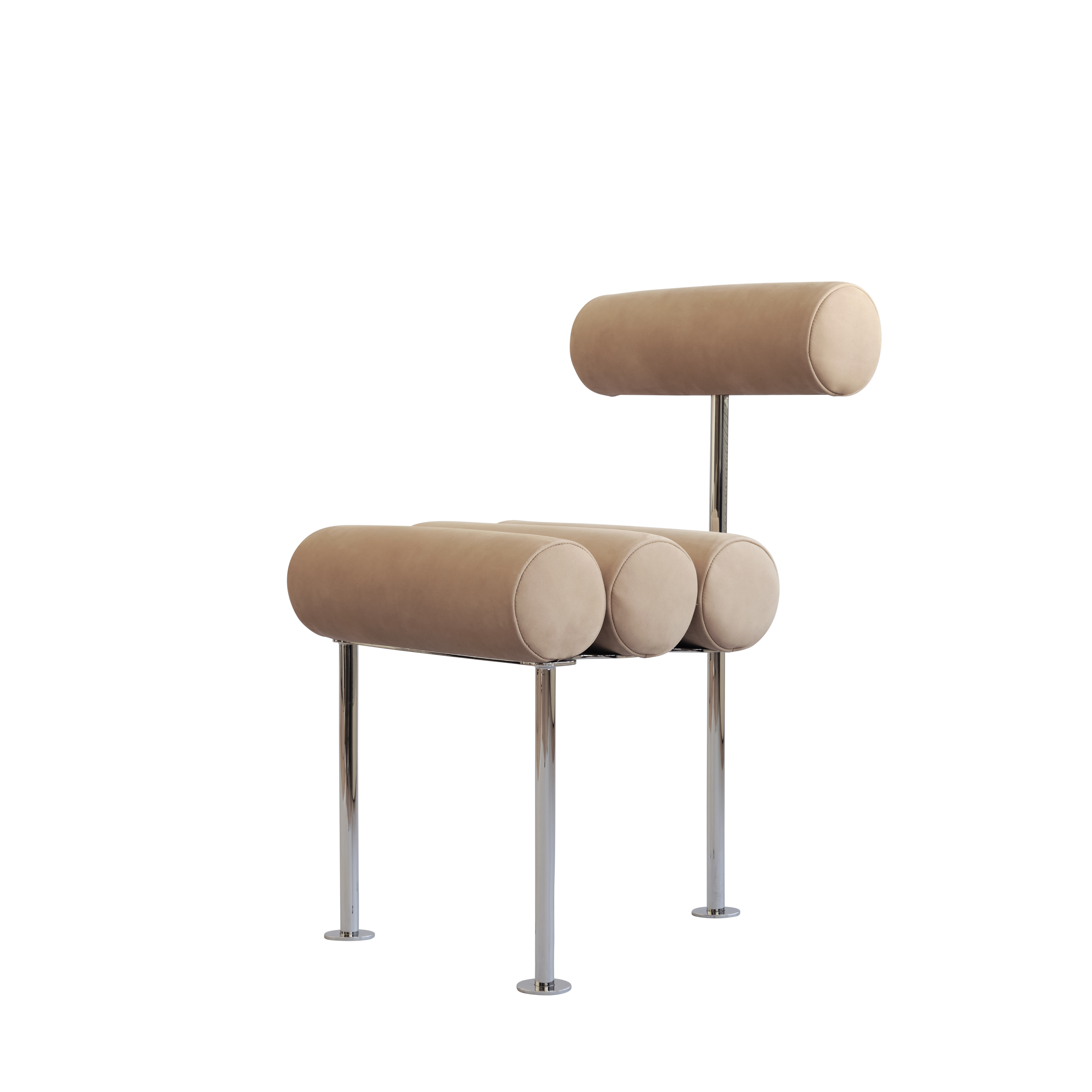 Der Hiro Stuhl bzw. Dining Chair ist ein moderner Designerstuhl, der Minimalismus, Funktionalität und Komfort perfekt vereint. Seine klare Linienführung und die charakteristischen zylindrischen Polsterrollen für Sitz- und Rückenlehne machen ihn zu einem unverwechselbaren Statement-Piece. Ob am Esstisch, im Wohnbereich oder als stilvoller Akzent im Büro – der Hiro Chair fügt sich nahtlos in jede Umgebung ein und verleiht ihr eine skulpturale Eleganz.