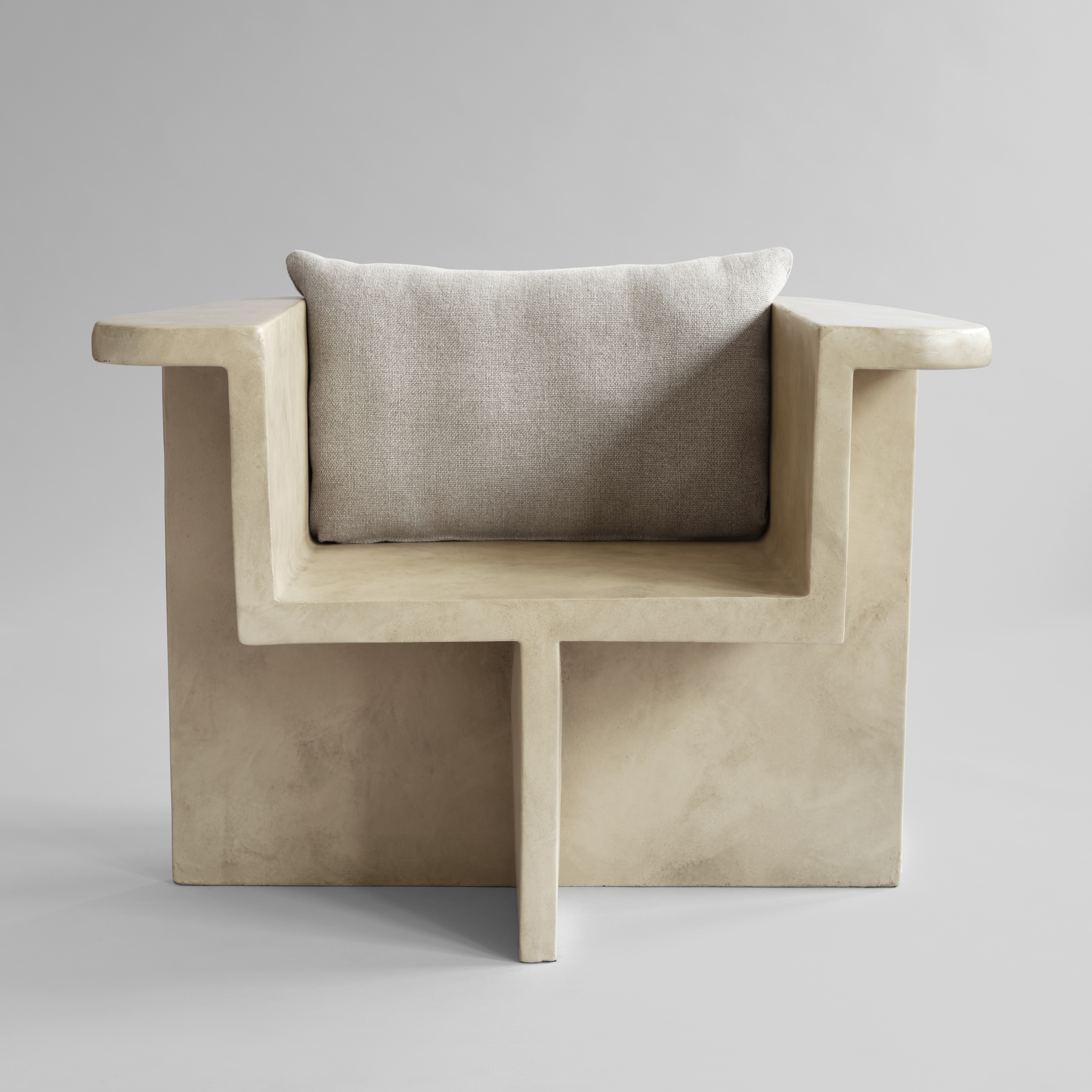 101 COPENHAGEN BRUTUS Loungesessel • 4 Varianten • In- oder Outdoor Brutus Lounge Chair - Skulpturaler Loungesessel im Brutalist Design Der Brutus Lounge Chair – auch als Brutus Loungesessel bekannt – ist ein ikonisches Statement-Piece, inspiriert von der brutalistischen Architekturbewegung der 1950er-Jahre. Mit seiner markanten Silhouette, den klaren Linien und den skulpturalen Proportionen vereint dieser Loungesessel architektonische Strenge mit organischer Wärme. Die großzügige Sitzfläche, die niedrige Sitzhöhe und die breiten Armlehnen schaffen ein Design, das gleichermaßen monumental wie einladend wirkt. Jeder Brutus Lounge Chair ist ein handgefertigtes Kunstwerk, das sorgfältig aus ausgewählten Materialien besteht – je nach Variante aus massivem Eichenholz oder aus robustem Faserbeton. Die Holzvarianten (Eiche natur und Coffee Black Oak) setzen auf die zeitlose Eleganz und lebendige Maserung von FSC-zertifizierter amerikanischer Roteiche, die durch die hochwertige Verarbeitung ihre Natürlichkeit und warme Ausstrahlung bewahrt. Die Betonvarianten (Coffee und Sand) überzeugen durch eine markante, handbemalte Oberfläche, die jedem Stück eine individuelle Textur und subtile Farbnuancen verleiht. Indoor & Outdoor nutzbar Die Faserbeton-Varianten sind robust und witterungsbeständig und eignen sich daher perfekt für den Outdoor-Bereich – ob auf der Terrasse, am Pool oder unter einer Pergola. Bitte beachten: Der Stuhl ist nicht frostfest und sollte im Winter geschützt oder abgedeckt werden. Die Eiche-Varianten bringen dagegen natürliche Wärme in den Innenraum und sind ideal für moderne Esszimmer mit skandinavischem oder minimalistischem Interieur. Varianten im Überblick: Variante 1: Coffee (Faserbeton): Tiefer Kaffeeton mit handbemalter Oberfläche, robust und outdoortauglich. Variante 2: Sand (Faserbeton): Mediterrane Helligkeit in Sandfarbe, modern und perfekt für Außenbereiche. Variante 3: Natural Oak: Helle, naturbelassene Eiche mit zeitloser, warmer Ausstrahlung.Variante 4: Coffee Black Oak: Dunkel gebeizte Eiche für markante Eleganz und ausdrucksstarken Kontrast. Mit seinem imposanten Auftritt eignet sich der Brutus Loungesessel sowohl für den modernen Wohnbereich als auch für großzügige Entrées, Galerien oder Loungebereiche. Die Beton-Varianten können zudem auch in überdachten Außenbereichen platziert werden, was sie besonders vielseitig macht. Ein Möbelstück, das weit mehr ist als ein Sitzmöbel: Der Brutus Lounge Chair ist ein architektonisches Statement für Liebhaber puristischer Designmöbel. Produktbeschreibung: Gestell: Massivholz (Eiche) oder Faserbeton, handbemalt (nicht frostfest) Sitzhöhe 36 cm Maße (L x B x H): 92 x 63 x 65 cm Bitte beachten Sie, dass die angezeigten Bilder Illustrationszwecken dienen und von dem tatsächlichen Endprodukt abweichen können.