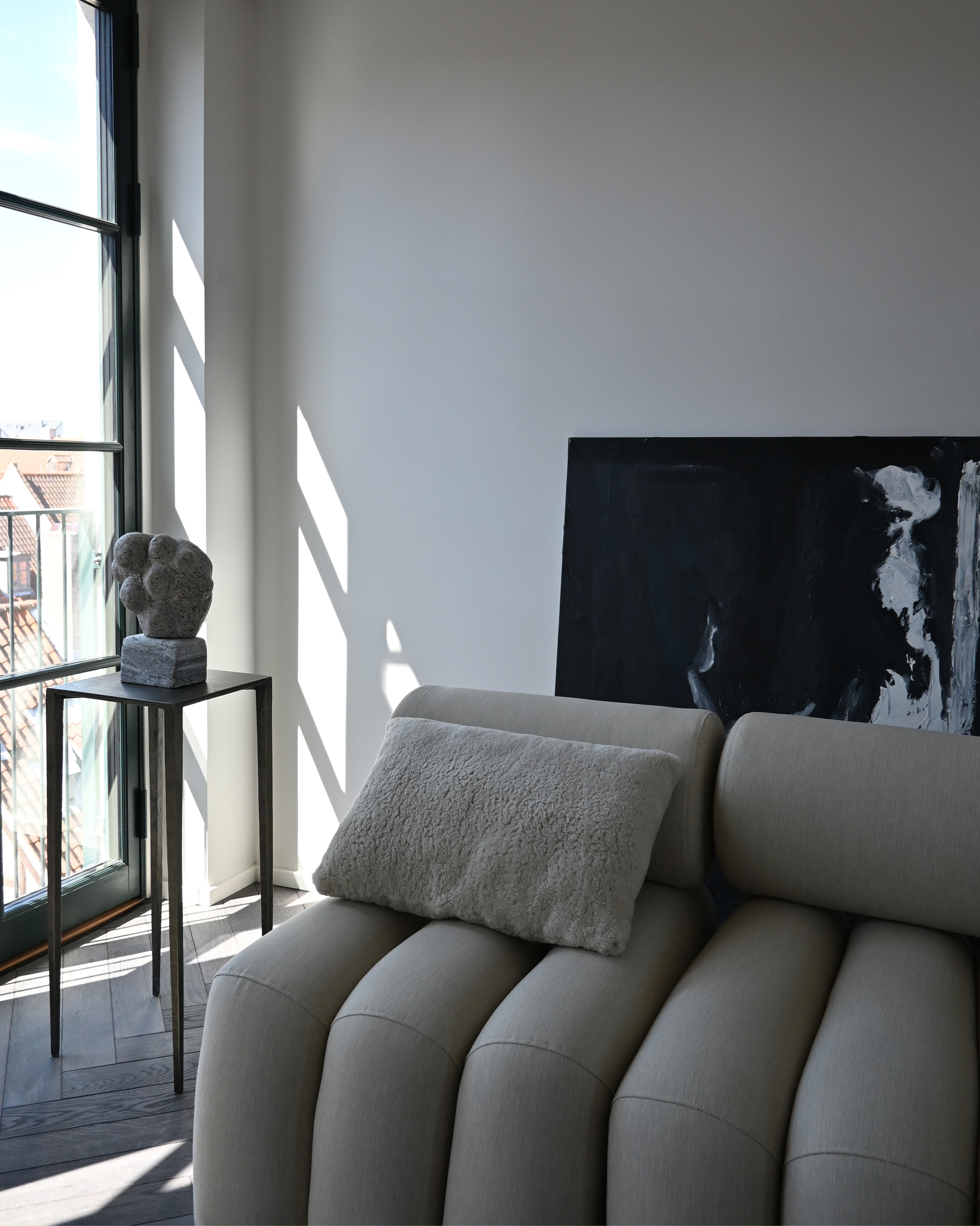 Das Makura Dekokissen 11 ergänzt die Brutus Lounge Chairs perfekt und bringt zusätzlichen Komfort sowie eine weiche, wohnliche Note in die markante Formsprache der Kollektion. Entworfen von Kristian Sofus Hansen & Tommy Hyldahl (2024), verbindet es organische Materialien mit architektonischer Präzision.