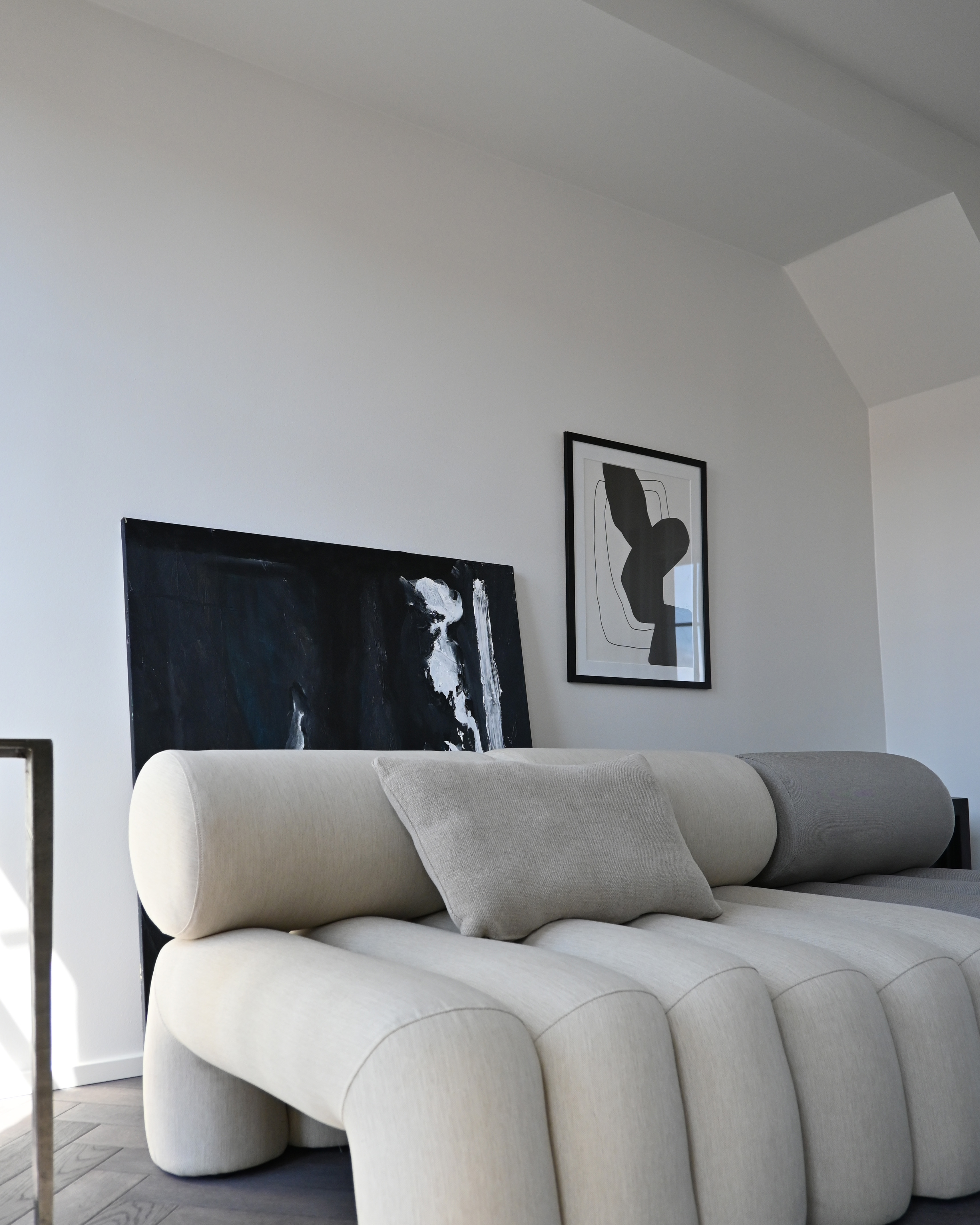 Raw Linen in Sand (8047-2): Ein puristisches Kissen aus naturbelassenem Leinen, das sich durch eine feine, erdige Textur auszeichnet. Das Material fügt sich harmonisch in die rohe Ästhetik der Brutus Kollektion ein und sorgt für eine weiche Sitzfläche, ohne den skulpturalen Ausdruck zu beeinträchtigen.