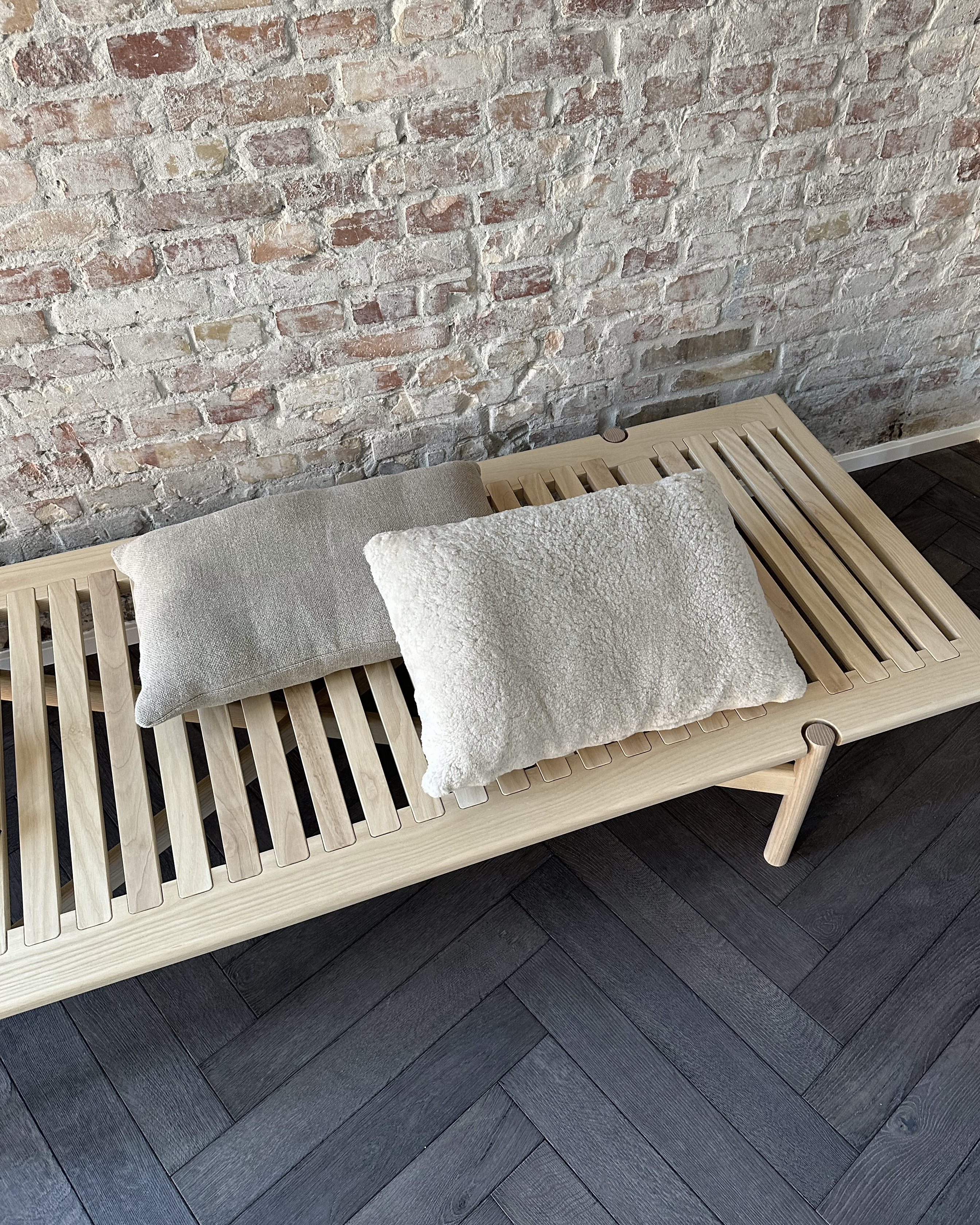 101 COPENHAGEN ARC BANK Sitzkissen • white chalk • LeinenARC von 101 Copenhagen – Edle Sitzkissen für 101 Copenhagen ARC Sitzbank Die ARC Sitzkissen wurden entworfen, um die skulpturale Form der ARC Sitzbank aus Faserbeton von 101 Copenhagen zu ergänzen. Gefertigt aus naturbelassenem Leinen, bringen sie weichen, organischen Komfort in Kombination mit einer klaren, architektonischen Formensprache. Die subtile Struktur des Leinenstoffs bildet einen feinen Kontrast zu den Materialien der Stühle – ob Faserbeton oder massives Eichenholz – und verstärkt deren ausdrucksstarke Erscheinung. Das Kissen ist passgenau auf die ARC Bank abgestimmt, sodass es nicht verrutscht und gleichzeitig die markante Silhouette der Möbel bewahrt. Das Ergebnis ist eine harmonische Balance aus Komfort und skulpturaler Strenge. DetailsFarbe: White ChalkMaterial: 100 % naturbelassenes LeinenPflege: Mit einem sauberen, feuchten Tuch abtupfen. Keine aggressiven Reinigungsmittel oder Scheuerschwämme verwenden. Direkte Sonneneinstrahlung vermeiden, da das Leinen sonst ausbleichen kann.Maße (L × B × H) : 120 x 35 x 5,6 cmBitte beachten Sie, dass die angezeigten Bilder Illustrationszwecken dienen und von dem tatsächlichen Endprodukt abweichen können.