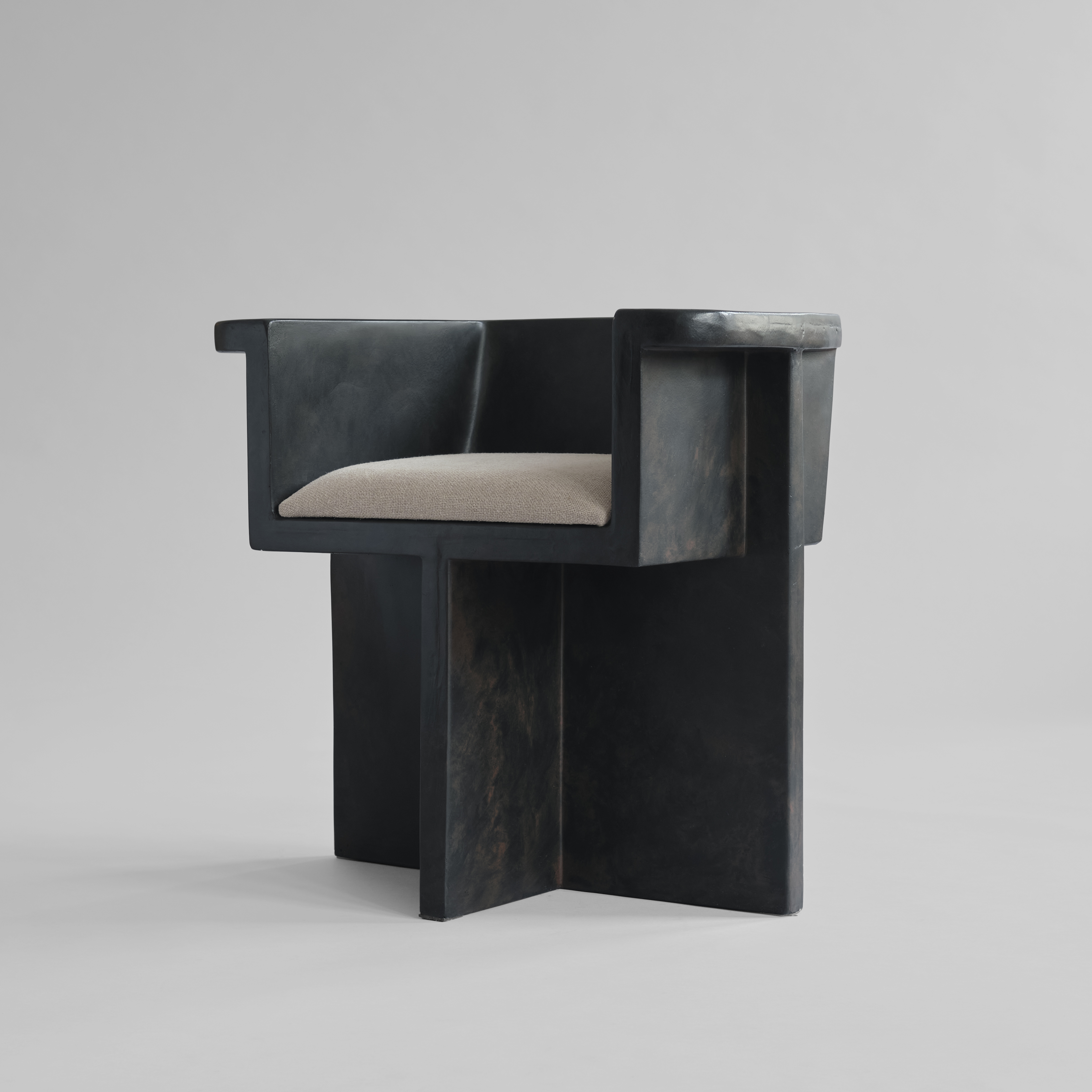 101 COPENHAGEN BRUTUS Stuhl mit Armlehne • In- oder Outdoor Brutus Dining Chair - Skulpturaler Stuhl mit Armlehne im Brutalist Design Der Brutus Dining Chair, auch bekannt als Brutus Stuhl mit Armlehne, ist ein ikonisches Designstück, inspiriert von der Brutalismus-Architektur der Mitte des 20. Jahrhunderts. Mit seiner klaren, geometrischen Formensprache und der markanten Armlehnen-Silhouette wird er zum architektonischen Statement am Esstisch – kraftvoll, reduziert und zugleich überraschend komfortabel. Gefertigt aus hochwertigen Materialien wie massiver Eiche oder Faserbeton, vereint der Brutus Chair skulpturale Präsenz mit alltagstauglicher Funktionalität. Die präzise Linienführung wird durch die subtil geschwungenen Armlehnen aufgelockert, wodurch ein spannender Kontrast zwischen Strenge und Weichheit entsteht. Indoor & Outdoor nutzbar Die Faserbeton-Varianten sind robust und witterungsbeständig und eignen sich daher perfekt für den Outdoor-Bereich – ob auf der Terrasse, am Pool oder unter einer Pergola. Bitte beachten: Der Stuhl ist nicht frostfest und sollte im Winter geschützt oder abgedeckt werden. Die Eiche-Varianten bringen dagegen natürliche Wärme in den Innenraum und sind ideal für moderne Esszimmer mit skandinavischem oder minimalistischem Interieur. Varianten im Überblick: Variante 1: Coffee (Faserbeton): Tiefer Kaffeeton mit handbemalter Oberfläche, robust und outdoortauglich. Variante 2: Sand (Faserbeton): Mediterrane Helligkeit in Sandfarbe, modern und perfekt für Außenbereiche. Variante 3: Natural Oak: Helle, naturbelassene Eiche mit zeitloser, warmer Ausstrahlung.Variante 4: Coffee Black Oak: Dunkel gebeizte Eiche für markante Eleganz und ausdrucksstarken Kontrast. Der Brutus Dining Chair verbindet Design-Ikone, Skulptur und Funktion – ein Möbelstück, das gleichermaßen als Esszimmerstuhl, Statement Chair oder Outdoor-Stuhl überzeugt. Produktbeschreibung: Gestell: Massivholz (Eiche) oder Faserbeton, handbemalt (nicht frostfest) Maße: B 60-69 × T50 × H 68 cm (Sitzhöhe 44 cm, Rückenlehne 24 cm) Maße (L x B x H): 60 x 50 x 69 cm Bitte beachten Sie, dass die angezeigten Bilder Illustrationszwecken dienen und von dem tatsächlichen Endprodukt abweichen können.