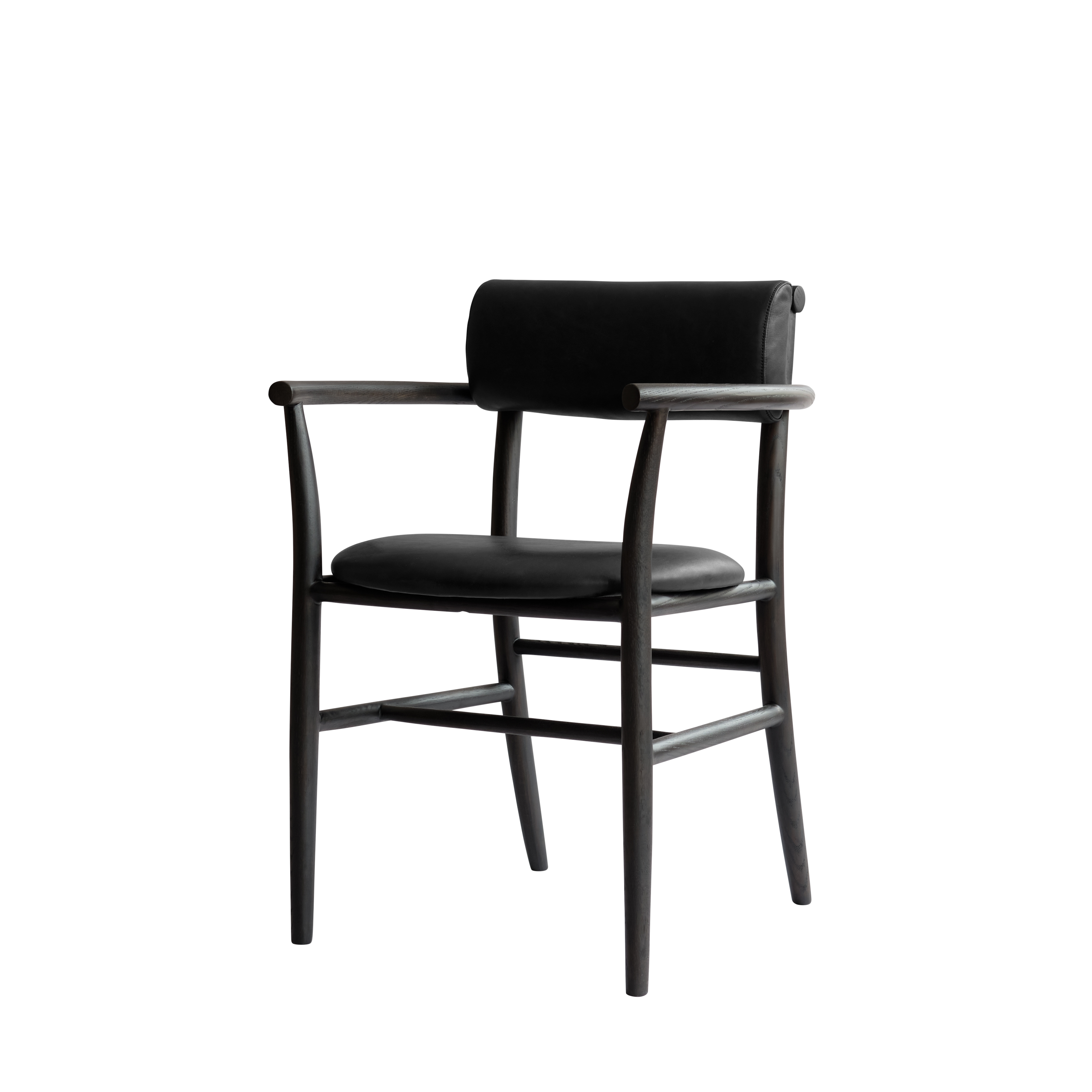 Der Nama Dining Chair mit Armlehne bzw. Nama Stuhl mit Armlehne vereint minimalistisches Design mit japanisch inspirierter Handwerkskunst. Der Name „Nama“ bedeutet „roh“ und „natürlich“ auf Japanisch und spiegelt die klare Formensprache des Stuhls wider, bei der jedes Designelement auch eine funktionale Aufgabe erfüllt. Das leicht geschwungene Holzgestell sorgt für Stabilität und Eleganz, während die gepolsterte Sitzfläche und Rückenlehne hohen Komfort bieten. Charakteristisch ist die markante Rückenlehne, die von Kopenhagener Fahrradtaschen inspiriert wurde und mit schlichten Lederriemen befestigt ist – ein raffinierter Akzent, der den Stuhl unverwechselbar macht.