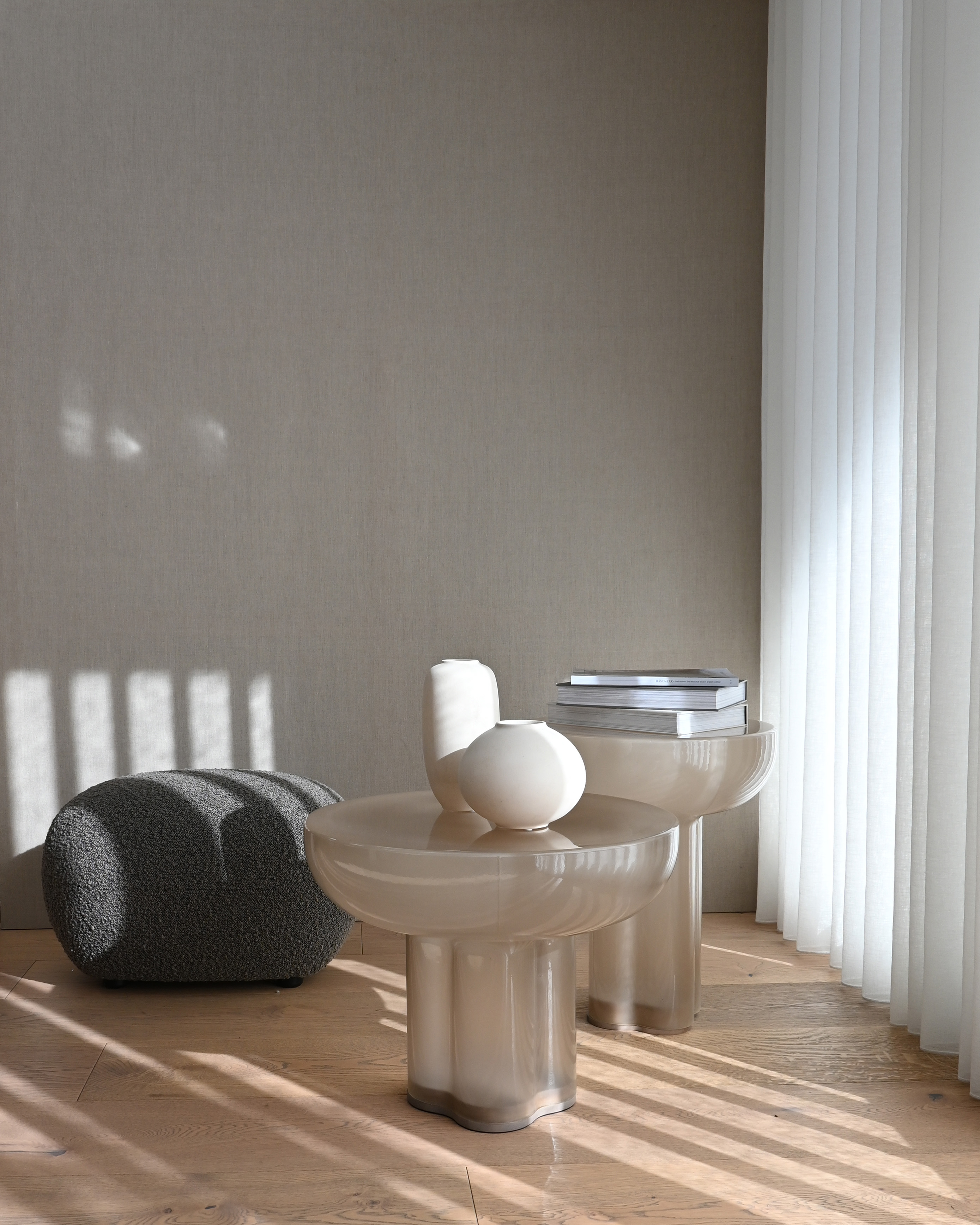 - Bezug: Wahlweise in Bouclé (Deep Taupe oder Off White) oder Sheepskin (Sandshell)
