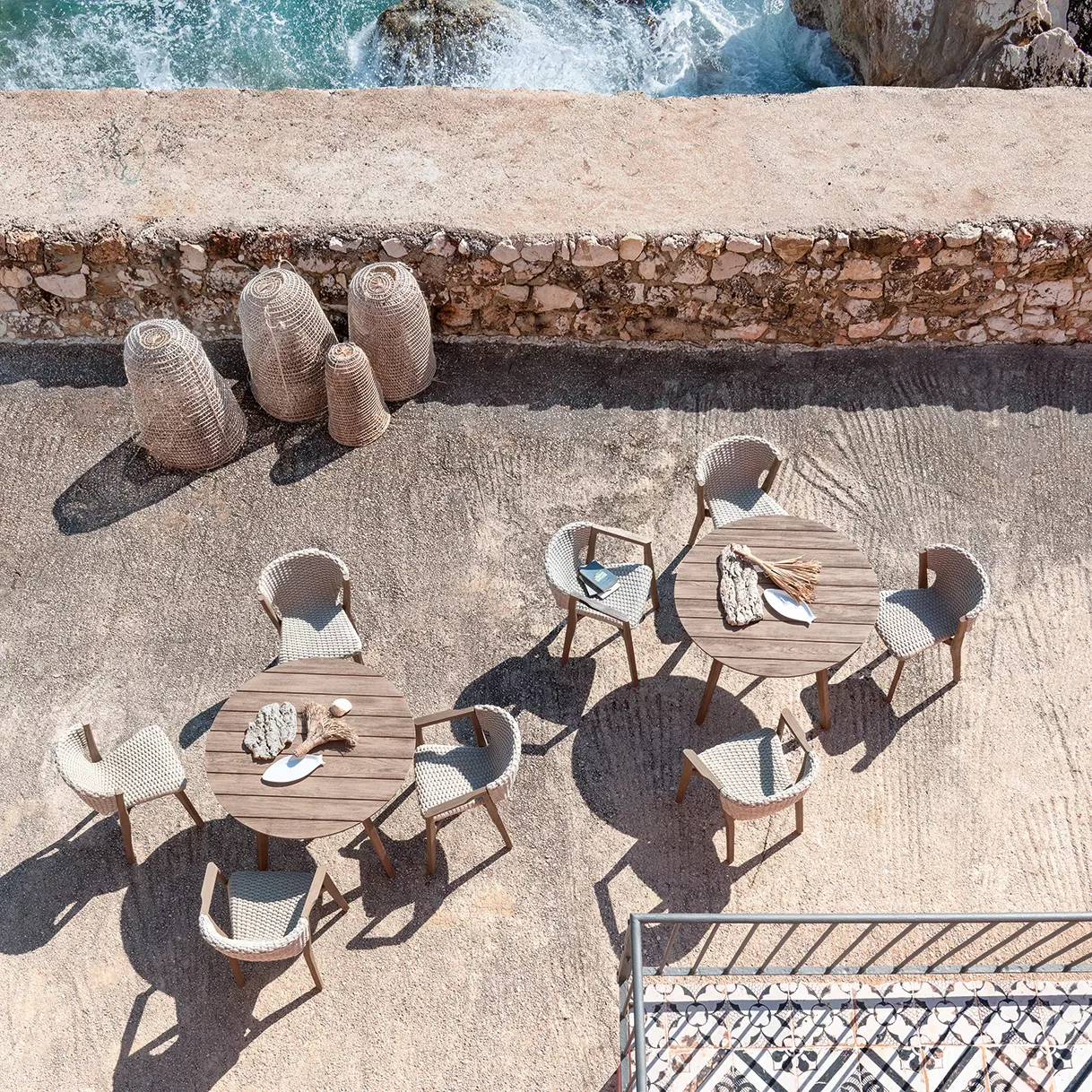 Die Kollektion Knit, erstmals vorgestellt auf der Mailänder Möbelmesse 2014, eröffnet die Zusammenarbeit zwischen Ethimo und Patrick Norguet, französischer Stardesigner, der mit modernen, puristischen Formen und stofflichen Empfindungen, einer besonderen Harmonie, Wärme und Schönheit nachspürt. Ethimo hat den Entwurf von Patrick Norguet, eine originelle Synthese aus Ästhetik und Funktion für das Leben im Freien, in Produkte verwandelt, die mit größter Sorgfalt in jedem Detail ausgeführt sind: vom Gestell der Tische und Stühle aus Teakholz bis zum synthetischen Flechtwerk des Lehnstuhls, auf elegante Weise ideal für Garten und Terrasse. Knit ist nicht nur raffiniert, sondern auch intelligent in jedem Detail; so der mittlere Schlitz im runden Tisch, der einen praktischen Griff für seinen Transport abgibt.