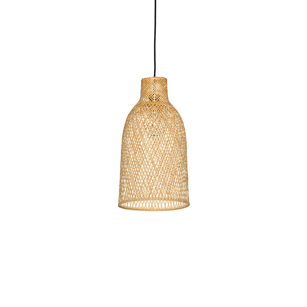 Ay illuminate CAP • Deckenleuchte Die Deckenleuchte Ay Illuminate CAP ist ein elegantes und organisches Designstück, das handwerkliche Tradition mit modernem Minimalismus verbindet. Sie besteht aus geflochtenem Bambus und schafft eine warme, natürliche Atmosphäre. Der Bambus ist in einem feinen Muster verarbeitet, das das Licht subtil filtert und sanfte Schattenspiele im Raum erzeugt. Varianten Die Leuchte CAP ist in zwei Größen erhältlich: CAP Small: Mit einem Durchmesser von 38 cm und einer Höhe von 92 cm eignet sich diese Variante besonders für kleinere Räume oder als elegantes Designelement über Esstischen, Arbeitsflächen oder in gemütlichen Sitzecken. CAP Large: Diese größere Version mit einem Durchmesser von 48 cm und einer Höhe von 112 cm ist ideal für größere Räume oder als Blickfang in hohen Räumen. Sie verleiht jedem Raum eine eindrucksvolle visuelle Präsenz. Materialien: geflochtener Bambus (natur)Fassung für E27, max 60WMit einem schwarzen 3-Meter Kabel ausgestattetHergestellt aus natürlichen Materialien, ohne chemische Behandlung, d.h. Farben können durch Sonneneinstrahlung verblassen oder sich ändern exkl. Lichtquelle (optional auswählbar) Maße:CAP SMALL: ø 38 x 92 cm (BxH) Gewicht: 0,5 kg CAP LARGE: ø 48 x 112 cm (BxH) Gewicht: 0,6 kg