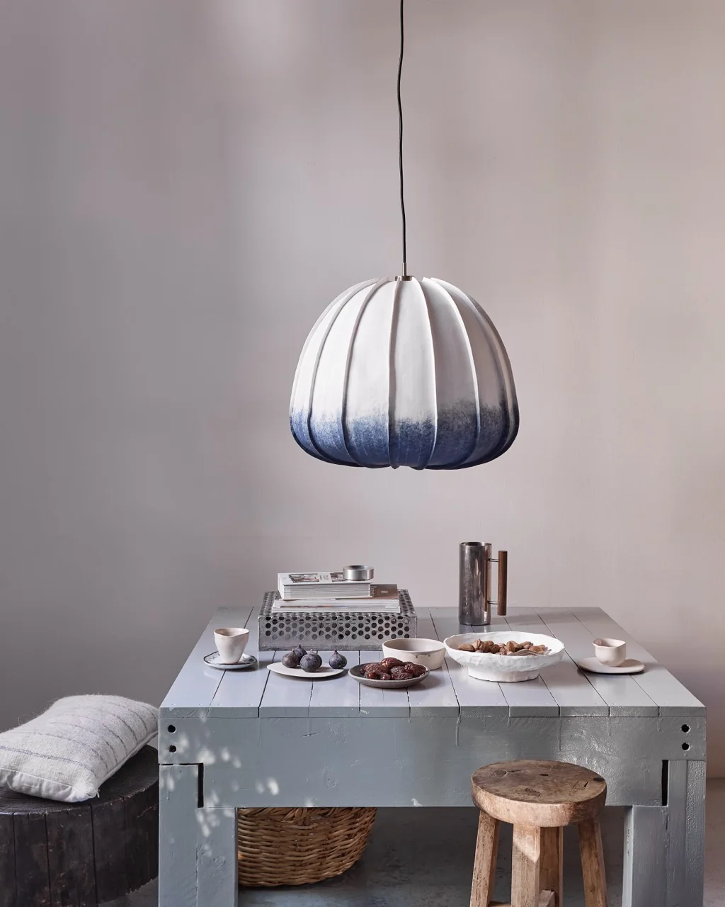Ay illuminate PEBBLE • Deckenleuchte Die Ay illuminate Deckenleuchte PEBBLE kombiniert ein organisches Design mit Nachhaltigkeit und Eleganz. Der Lampenschirm besteht aus recyceltem Karton, was nicht nur umweltfreundlich ist, sondern der Leuchte auch eine interessante Textur und Haptik verleiht. Die PEBBLE Leuchte ist in drei stilvollen Farben erhältlich: Coal, Grey und Terracotta. Jede Farbe bringt ihren eigenen Charme in den Raum und lässt sich perfekt in verschiedene Einrichtungsstile integrieren. Die Leuchte gibt es in drei verschiedenen Größen, um unterschiedliche Räume ideal zu beleuchten:27×21×18 cm (klein) 36×27×22 cm (mittel) 44×35×29 cm (groß) Die organische, an einen Kieselstein erinnernde Form verleiht der Leuchte ihren Namen und sorgt für ein weiches, gemütliches Lichtambiente. Egal ob im Wohn- oder Esszimmer – die PEBBLE Deckenleuchte setzt natürliche und moderne Akzente. Materialien: KartonFassung für E27, max 60WMit einem schwarzen 3-Meter Kabel ausgestattetHergestellt aus natürlichen Materialien, ohne chemische Behandlung, d.h. Farben können durch Sonneneinstrahlung verblassen oder sich ändern exkl. Lichtquelle (optional auswählbar) Maße:PEBBLE SMALL: 27 x 21 x 17 cm (BxTxH) Gewicht: 0,48 kg PEBBLE MEDIUM: 34 x 32 x 23 cm (BxTxH) Gewicht: 0,8 kg PEBBLE LARGE: 45 x 36 x 26 cm (BxTxH) Gewicht: 1,45 kg