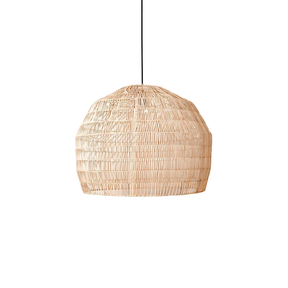 Ay illuminate RATTAN • BURI • Deckenleuchte Die Ay illuminate RATTAN und BURI Deckenleuchte bringt mit ihrem natürlichen Material und zeitlosen Design Wärme und Leichtigkeit in jeden Raum. Hergestellt aus handgewebtem Rattan, fügt sie sich harmonisch in verschiedene Einrichtungsstile ein und sorgt für ein gemütliches Lichtspiel. Die RATTAN und BURI Leuchte ist in zwei Formen erhältlich: Bulb und Bell, die jeweils zwei Größen bieten, um unterschiedlichste Raumkonzepte zu ergänzen. RATTAN: in Rattan (natur)BURI: in Rattan (schwarz)Maße:Bulb Small: Ø54 cm, Höhe 63 cmBulb Large: Ø91 cm, Höhe 95 cmBell Small: Ø63 cm, Höhe 47 cmBell Large: Ø85 cm, Höhe 85 cm Dank der natürlichen Struktur des Rattans verbreitet die Leuchte ein sanftes, diffuses Licht und verleiht jedem Raum eine warme, einladende Atmosphäre. Die verschiedenen Größen und Formen machen sie sowohl als Einzelstück als auch in Kombination zu einem echten Blickfang in Wohn- oder Essbereichen. Materialien: Rattan (natur oder schwarz)Fassung für E27, max 60WMit einem schwarzen 3-Meter Kabel ausgestattetHergestellt aus natürlichen Materialien, ohne chemische Behandlung, d.h. Farben können durch Sonneneinstrahlung verblassen oder sich ändern exkl. Lichtquelle (optional auswählbar)