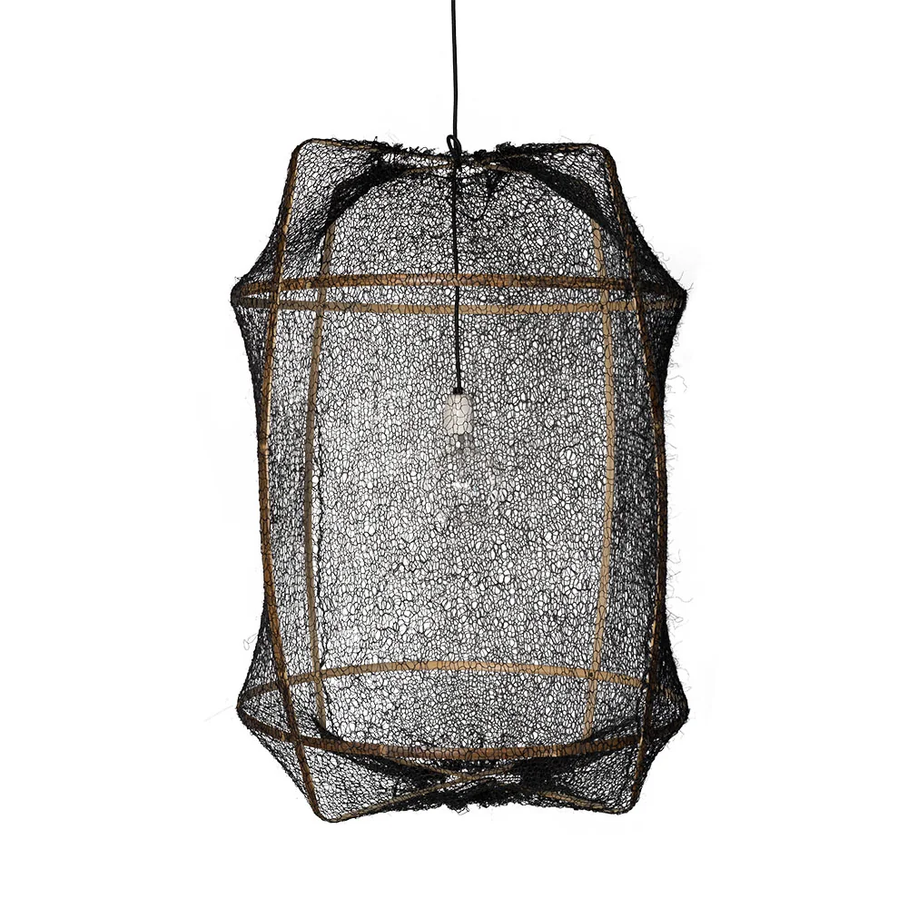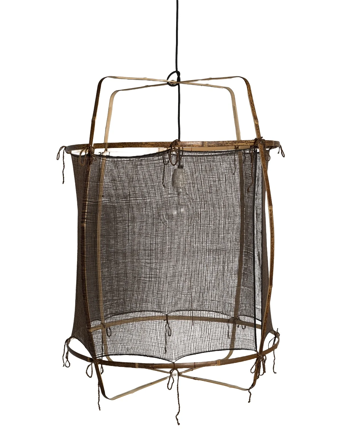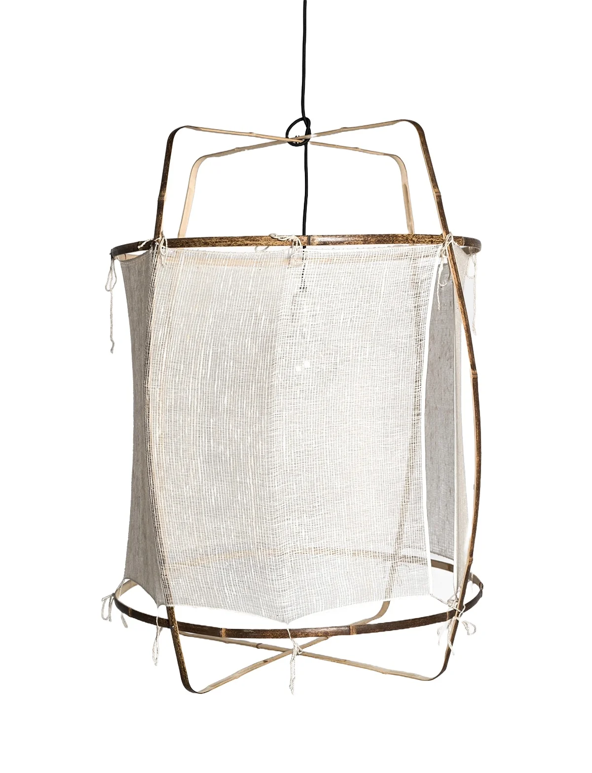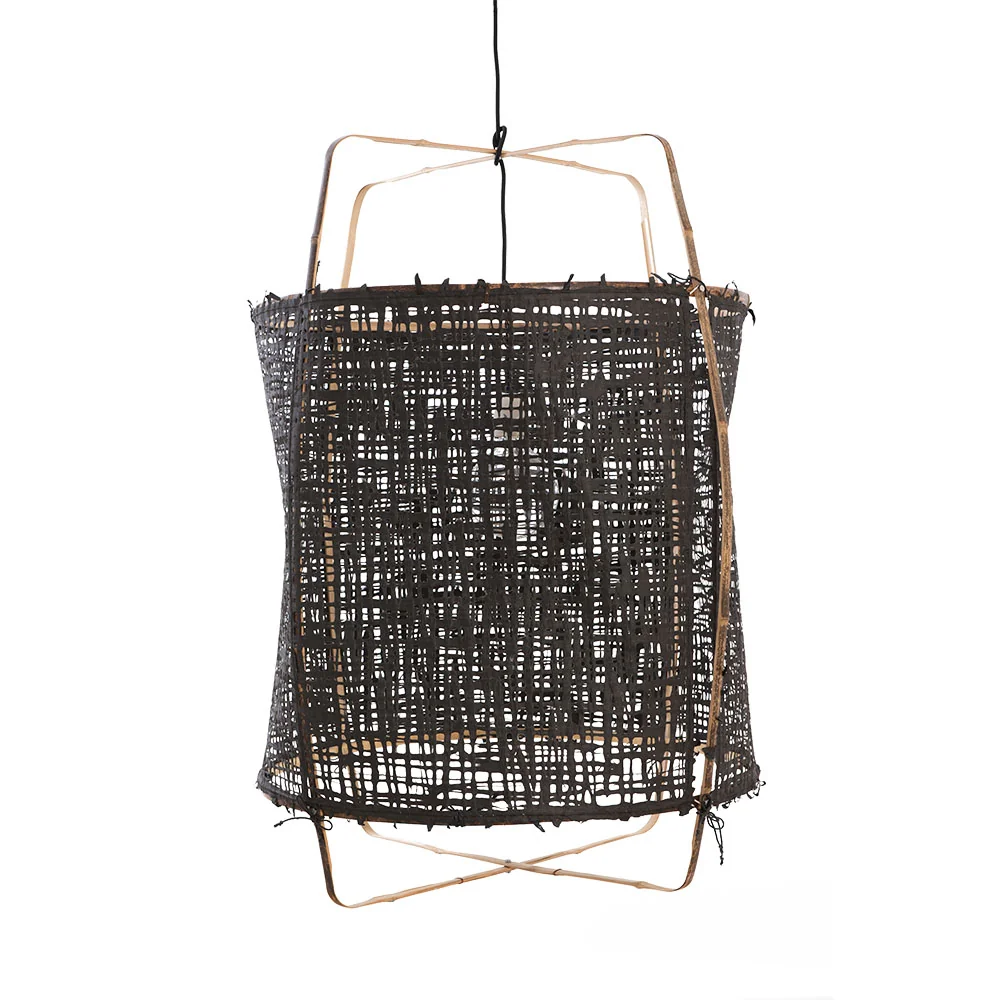 Das Gestell der Z1 Lampe besteht immer aus leichtem und robustem Bambus, das von Hand zu einer filigranen Struktur geformt wird. Dieses natürliche Grundgerüst wird durch verschiedene Schirme ergänzt, die je nach Ausführung unterschiedliche Materialien und Texturen bieten, um das Licht sanft und atmosphärisch zu streuen.