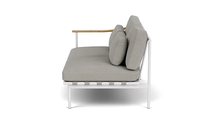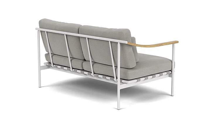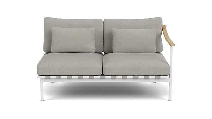 Gefertigt aus einem hochwertigen, pulverbeschichteten Aluminiumrahmen, bietet das Eckmodul eine langlebige, wetterbeständige Konstruktion und ist in den Farbvarianten Arctic White und Forge Grey erhältlich. Hinzu kommen wunderschöne Teakarmlehnen. Die luxuriösen, gut verarbeiteten Kissen bieten höchsten Sitzkomfort und fügen sich harmonisch in das durchdachte Design ein.