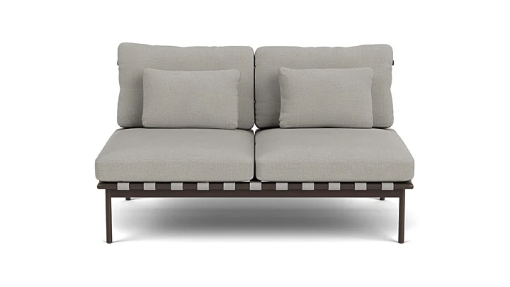Der pulverbeschichtete Aluminiumrahmen verleiht dem Mittelmodul eine elegante Leichtigkeit, während die hochwertigen, gut verarbeiteten Polster für erstklassigen Komfort sorgen. Die modulare Bauweise erlaubt es, das Mittelmodul flexibel mit anderen Elementen der Serie zu kombinieren – sei es als Erweiterung eines Sofas, als Solitärsitz oder als Verbindungselement in einer Ecklösung.