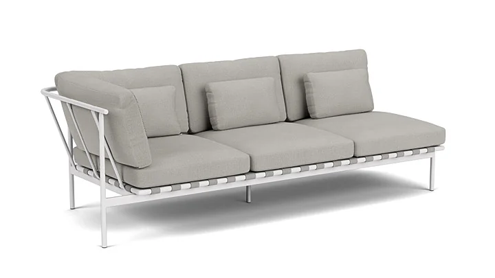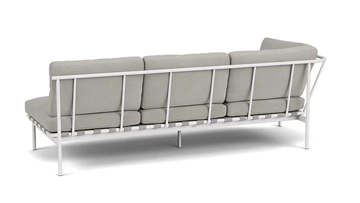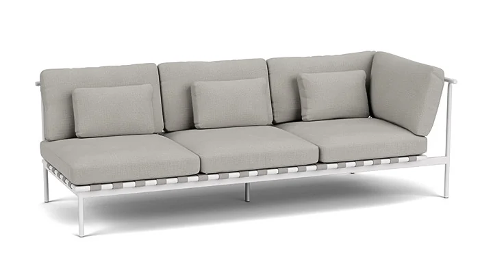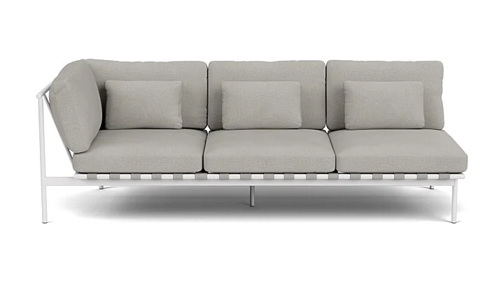 Gefertigt aus einem hochwertigen, pulverbeschichteten Aluminiumrahmen, bietet das Eckmodul eine langlebige, wetterbeständige Konstruktion und ist in den Farbvarianten Arctic White und Forge Grey erhältlich. Die luxuriösen, gut verarbeiteten Kissen bieten höchsten Sitzkomfort und fügen sich harmonisch in das durchdachte Design ein.