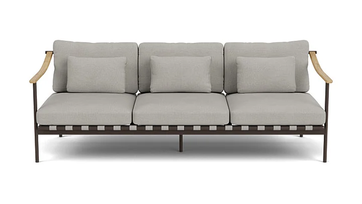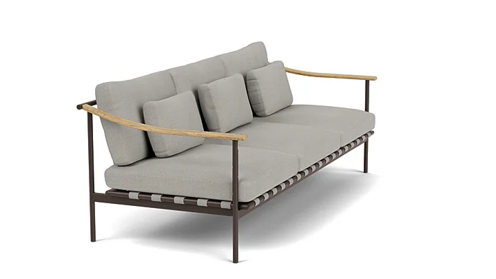 Das Around Dreisitzer-Sofa von Barlow Tyrie kombiniert zeitloses Design mit außergewöhnlichem Komfort und ist eine perfekte Ergänzung für stilvolle Outdoor-Bereiche. Inspiriert von der klassischen Handwerkskunst spindel- und dampfgebogener Holzmöbel, zeichnet sich das Sofa durch seine sanften Formen, präzisen Details und moderne Materialien aus.