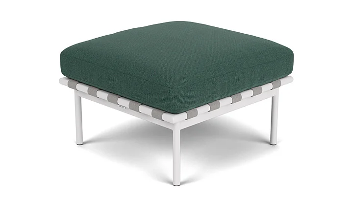 Gefertigt mit einem maßgefertigten Aluminiumrahmen, fügt sich der Ottoman nahtlos in die Around-Kollektion ein. Die veredelten, pulverbeschichteten Oberflächen harmonieren perfekt mit den hochwertig verarbeiteten, luxuriösen Polstern, die außergewöhnlichen Sitzkomfort bieten. Ob als Fußablage, zusätzliche Sitzgelegenheit oder kleine Ablagefläche – seine modulare Bauweise ermöglicht vielseitige Einsatzmöglichkeiten.