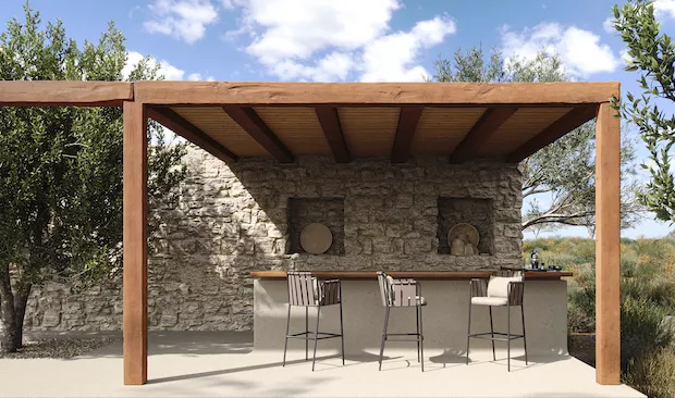 Teja entstand aus der Beobachtung unterschiedlicher Texturen, die wir in der mediterranen Landschaft finden können. Holz, Seil und Metall sind normalerweise in diesen Räumen vorhanden, Materialien, die auch in dieser Kollektion als Inspiration dienen, ebenso wie die überlappenden Ebenen ihrer Dächer, die die Terrassen dieser geografischen Region charakterisieren.