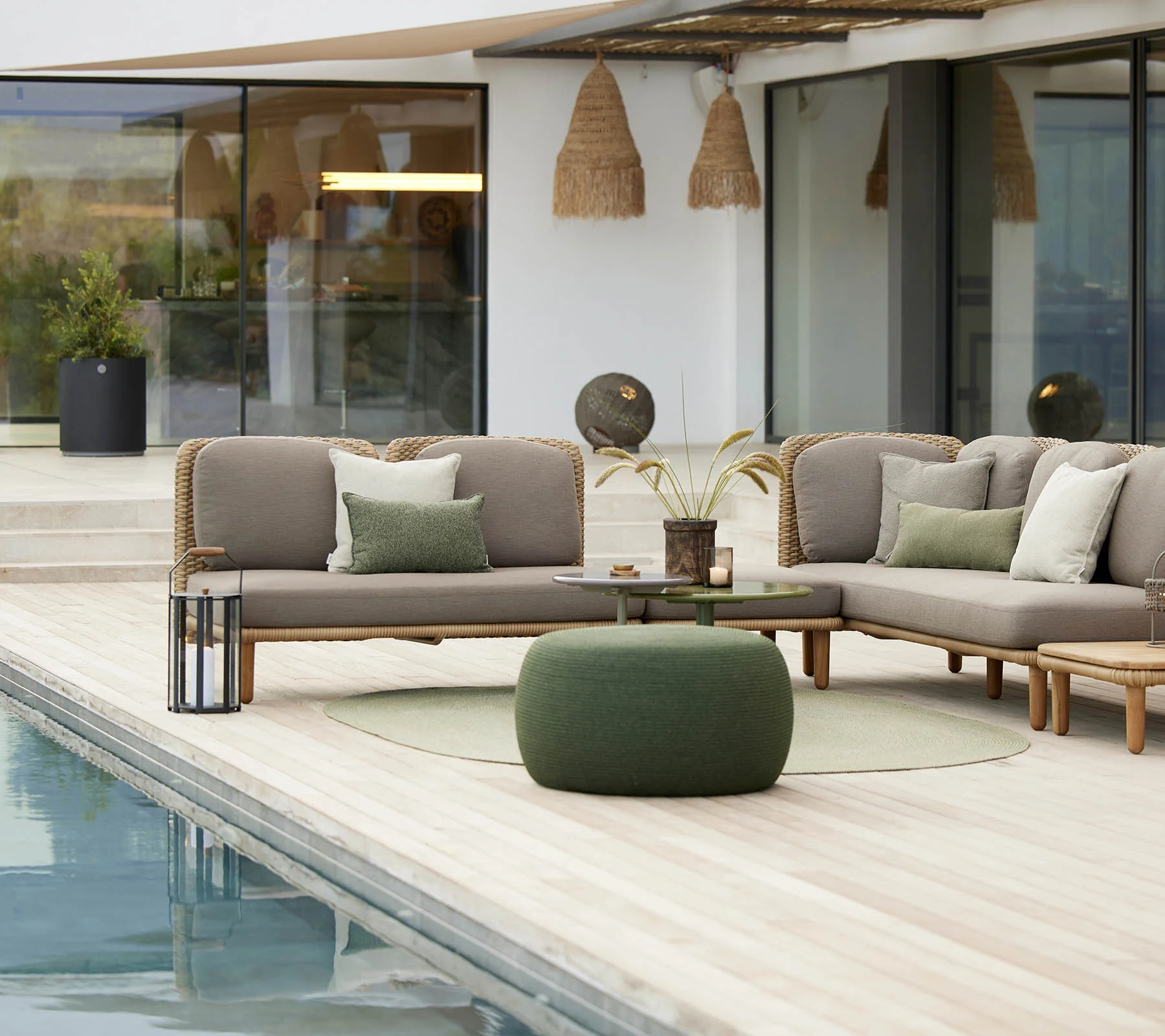 Die Cane-line Arch Arm-/Rückenlehnen niedrig in der Farbe Natural/Taupe sind Teil des modularen Arch Lounge-Konzepts von Foersom & Hiort-Lorenzen MDD und rahmen Ihre Outdoor-Sitzlandschaft auf elegante Weise ein. Die seitlichen Elemente greifen die sanft gebogenen Linien der Arch-Kollektion auf und verleihen Sofamodulen und Sesseln eine architektonische, zugleich einladende Anmutung. Die Seiten sind in einem aufwendig handgeflochtenen Cane-line Flat Weave gearbeitet, dessen natürlicher Farbmix von der Natur inspiriert ist und dem Design eine warme, wohnliche Ausstrahlung verleiht. Die leicht gebogene Oberkante sorgt für angenehmen seitlichen Halt und unterstützt den entspannten Lounge-Komfort.
