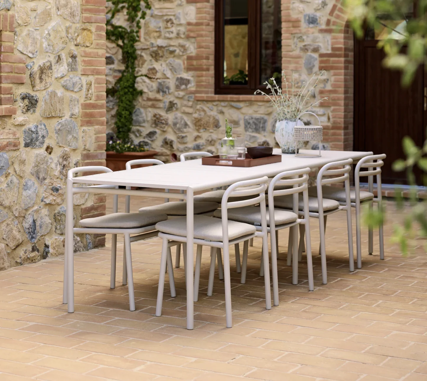 Cane-line BLISS Esstisch | verschiedene Größen Zeitlos. Skandinavisch. Flexibel – Der Bliss-Esstisch für Ihren Außenbereich Mit dem Bliss-Esstisch von Foersom & Hiort-Lorenzen MDD zieht nordisches Design in Ihren Garten oder auf Ihre Terrasse ein. Klare Linien, harmonische Proportionen und hochwertige Materialien verleihen Ihrem Außenbereich eine moderne, elegante Note. Der Tisch ist aus pulverbeschichtetem Aluminium gefertigt – dadurch ist er nicht nur besonders leicht, sondern auch äußerst robust und wetterbeständig. Perfekt für den Alltag draußen und jedes Wetter. Wählen Sie aus einer stilvollen Farbpalette genau die Ausführung, die zu Ihrem persönlichen Geschmack passt. Ob für ein gemütliches Frühstück zu zweit oder ein Abendessen mit Freunden – der Bliss-Tisch vereint Form und Funktion mit Leichtigkeit. Und wenn Sie mal mehr Platz brauchen: Mit der praktischen Erweiterungsplatte inklusive zusätzlicher Beine lässt sich der Tisch im Handumdrehen vergrößern. Für kleinere Außenflächen ist der Bliss-Esstisch auch im kompakten Format (80x80 cm) erhältlich – mit dem gleichen luftigen Design und vollem Stilfaktor. Ein Tisch, der mitdenkt – und begeistert. ProdukteingenschaftenGestell: AluminiumMaterialien wetter- und lichtbeständigHohe Hitze- und KältebeständigkeitSowohl im Innen- als auch im Außenbereich einsetzbarWartungsarm und pflegeleicht