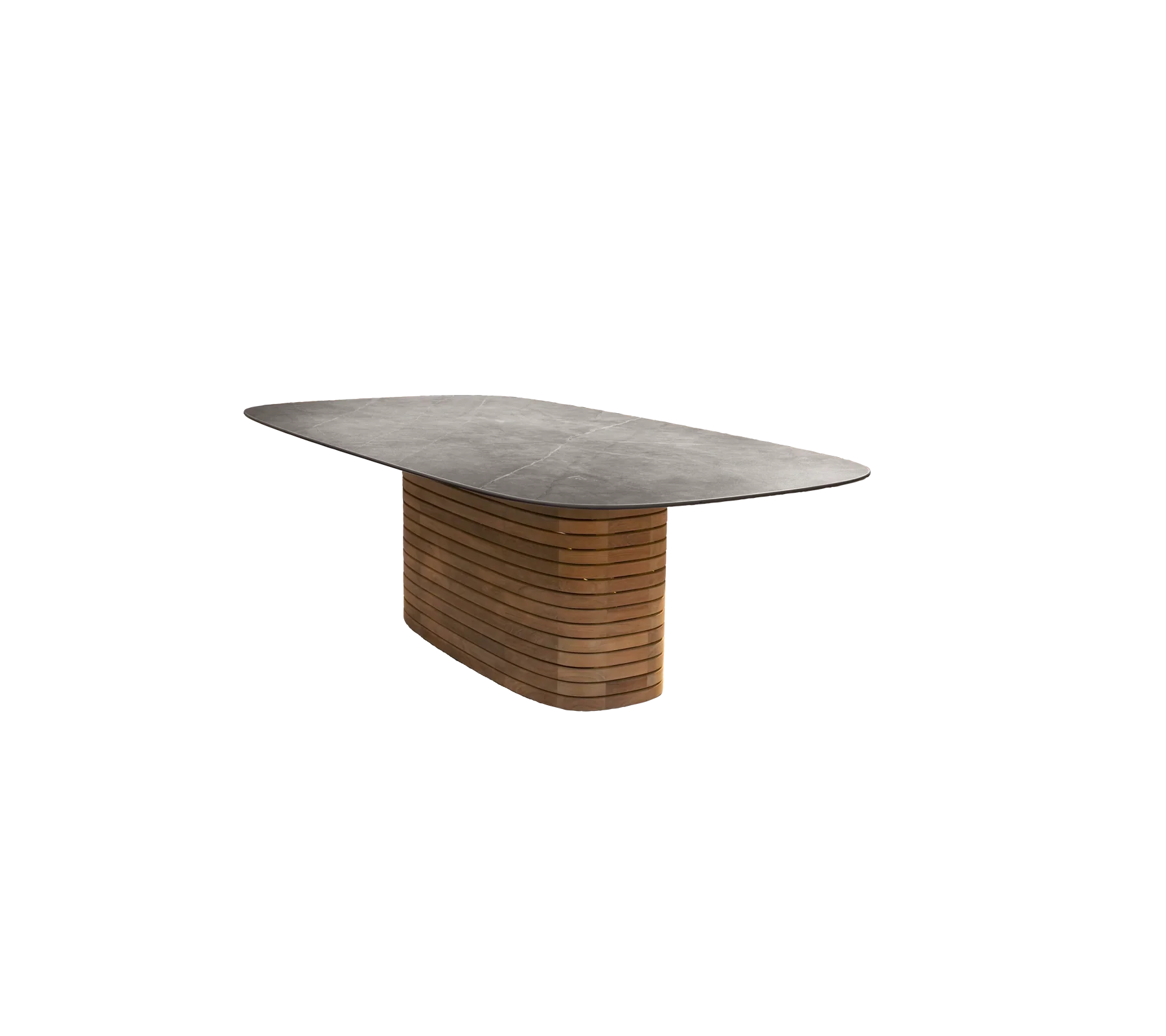 Cane-line MELLOW Esstisch Oval inkl. Teakholz Tischplatte Der Mellow Esstisch, quadratisch wurde von Cane-line Design entworfen und setzt mit seinem skulpturalen Säulengestell und der großzügigen Tischplatte (240x 130 cm) ein klares Statement für moderne Outdoor-Dinner. Die sanft abgerundeten Ecken und der markante, ruhige Ausdruck machen den Tisch zum eleganten Blickfang – von der Gartenterrasse bis zur Dachterrasse. Der quadratische Mellow ist wie geschaffen für geselliges Beisammensein und lässt sich je nach Stil und Umgebung mit einer Tischplatte in unterschiedlichen Materialien kombinieren. Produkteigenschaften• Ovale Tischform mit eleganten Rundungen – ideal für kommunikatives Zusammensitzen • Tischplatte wählbar in Teak oder Keramik (Taupe / Travertine Look) – je nach Stil und Einsatzbereich • Stabiler Säulenfuß – sorgt für ruhigen Stand und skulpturale Präsenz • Materialien wetterbeständig – für den ganzjährigen Outdoor-Einsatz konzipiert • Wartungsarm und langlebigMaße (B × T × H)240 x 130 x 70 cm Füße/Basis: Breite ca. 153 × Tiefe ca. 56 cm