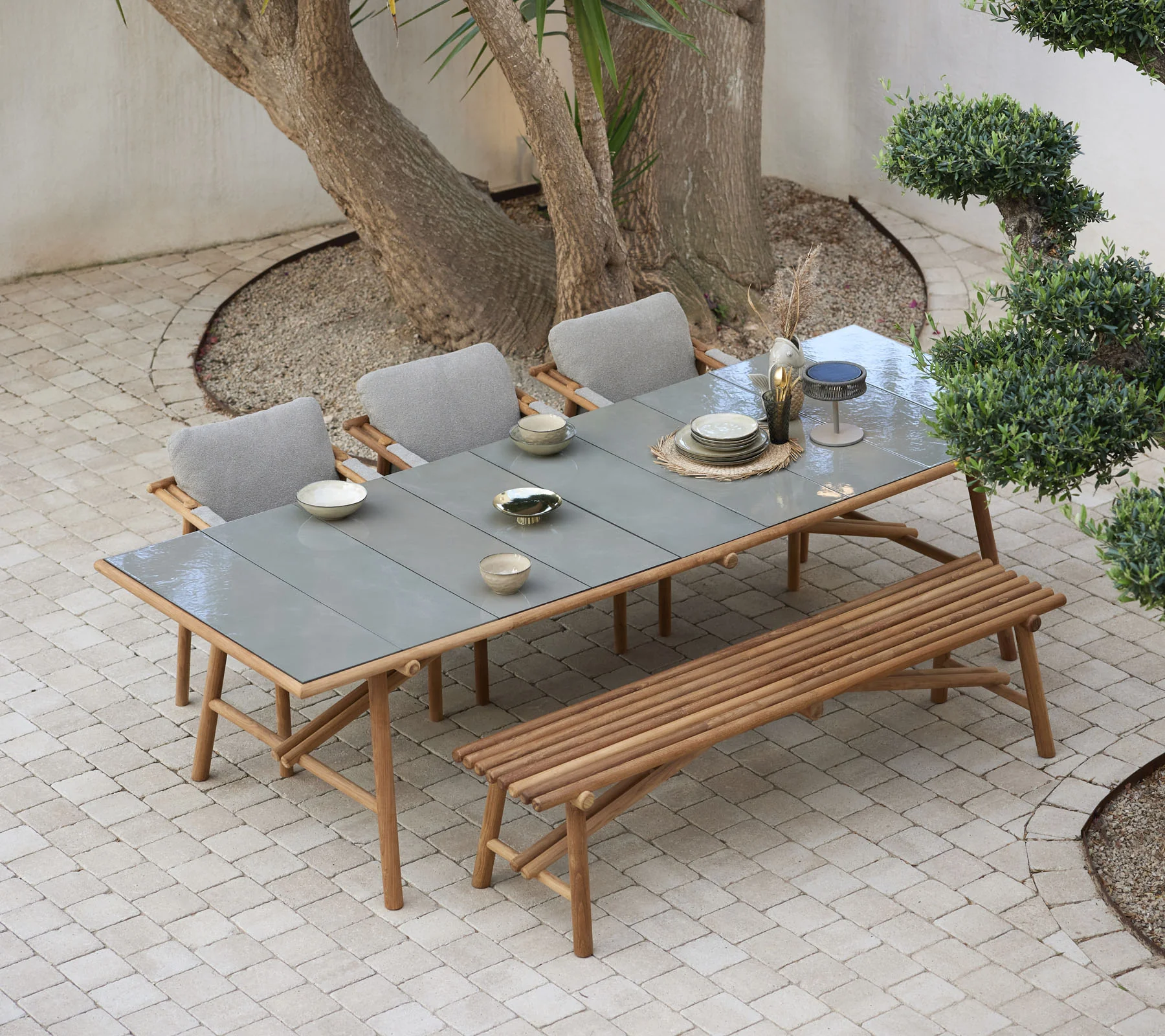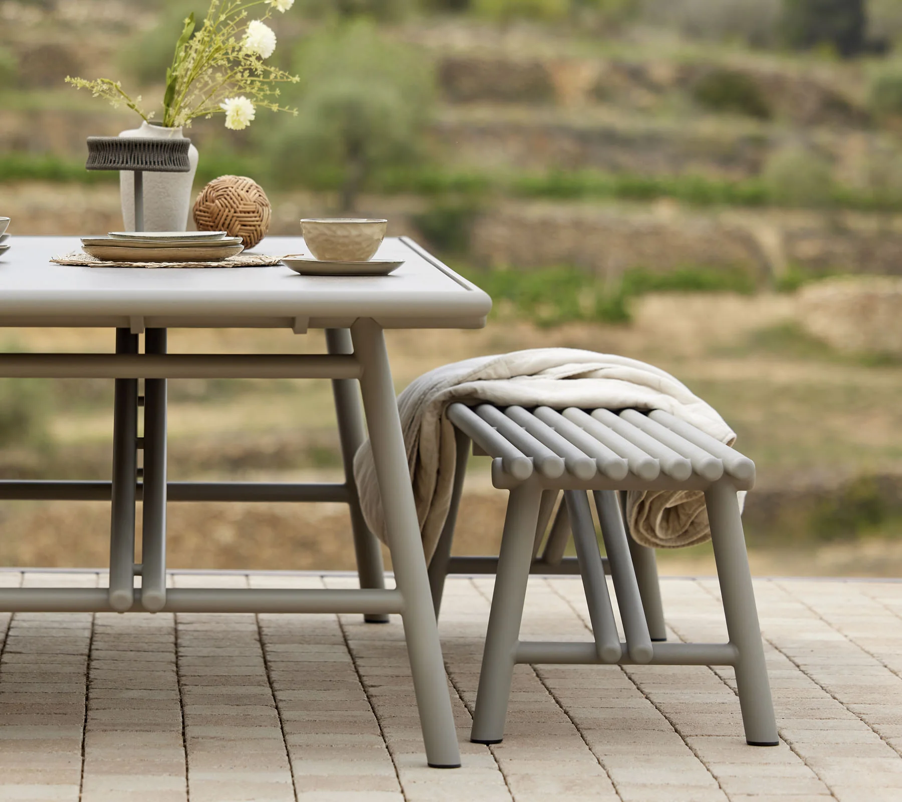 Genießen Sie Ihre Mahlzeiten mit einem Hauch von Natur und zeitloser Eleganz – der Sticks Esstisch macht jeden Moment im Freien besonders.