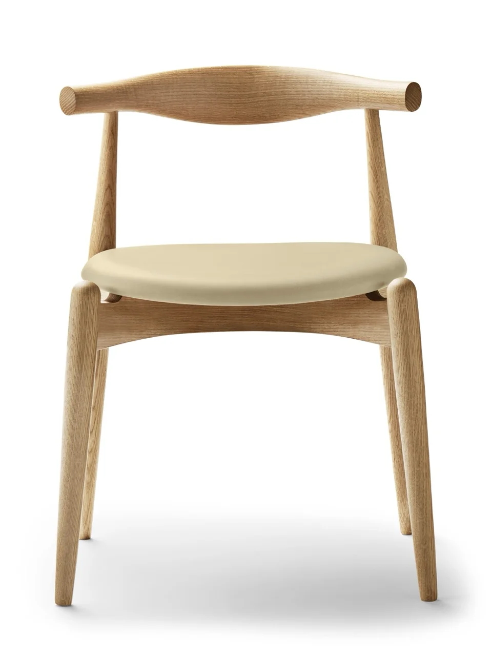 Charakteristisch für den CH20 ist die ergonomisch geformte Rückenlehne, die aus einem Stück Massivholz gebogen wird. Sie bietet hervorragenden Sitzkomfort und erlaubt verschiedene Sitzpositionen. Die Sitzfläche ist gepolstert und kann mit Stoff oder Leder bezogen werden.