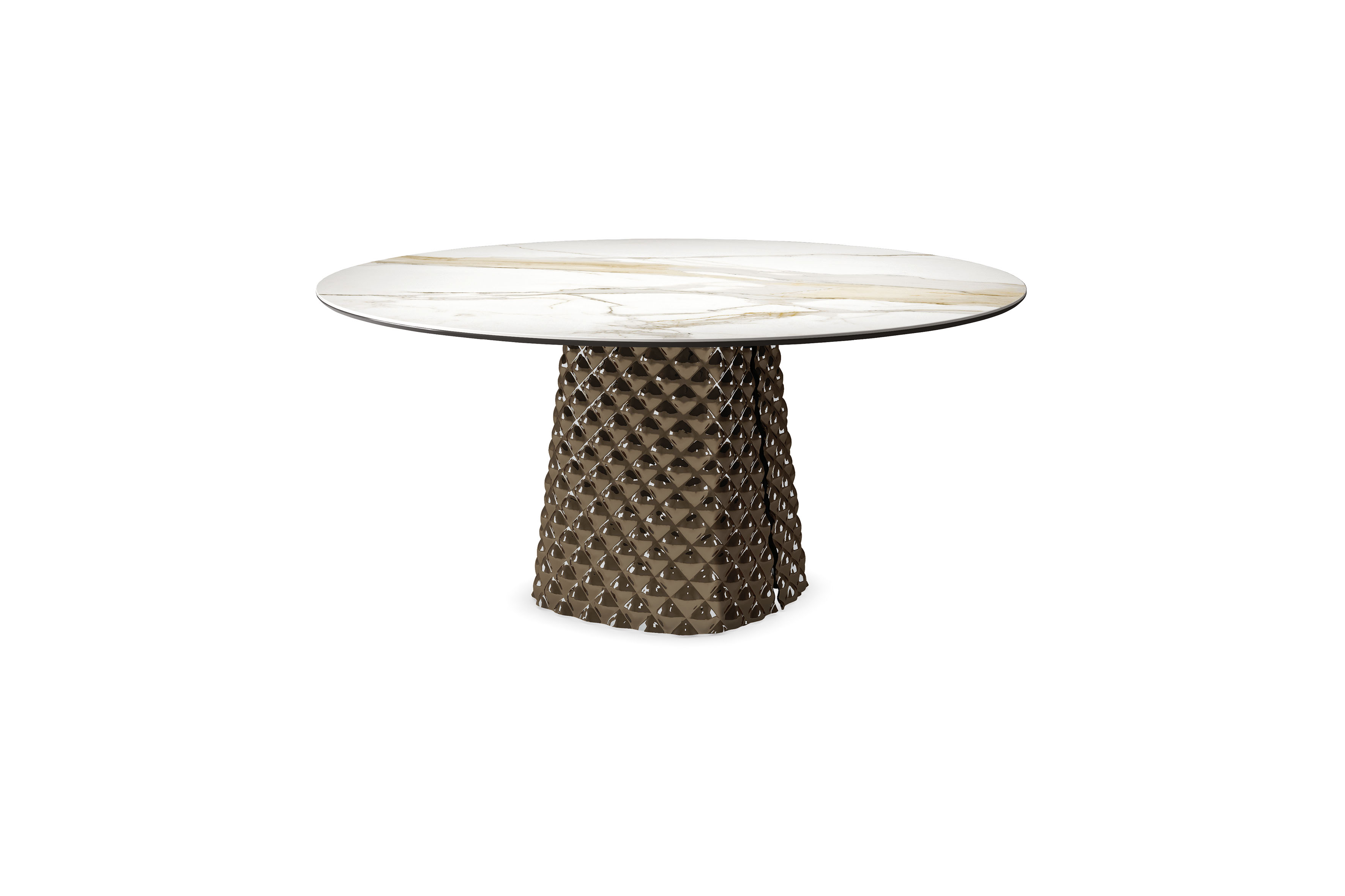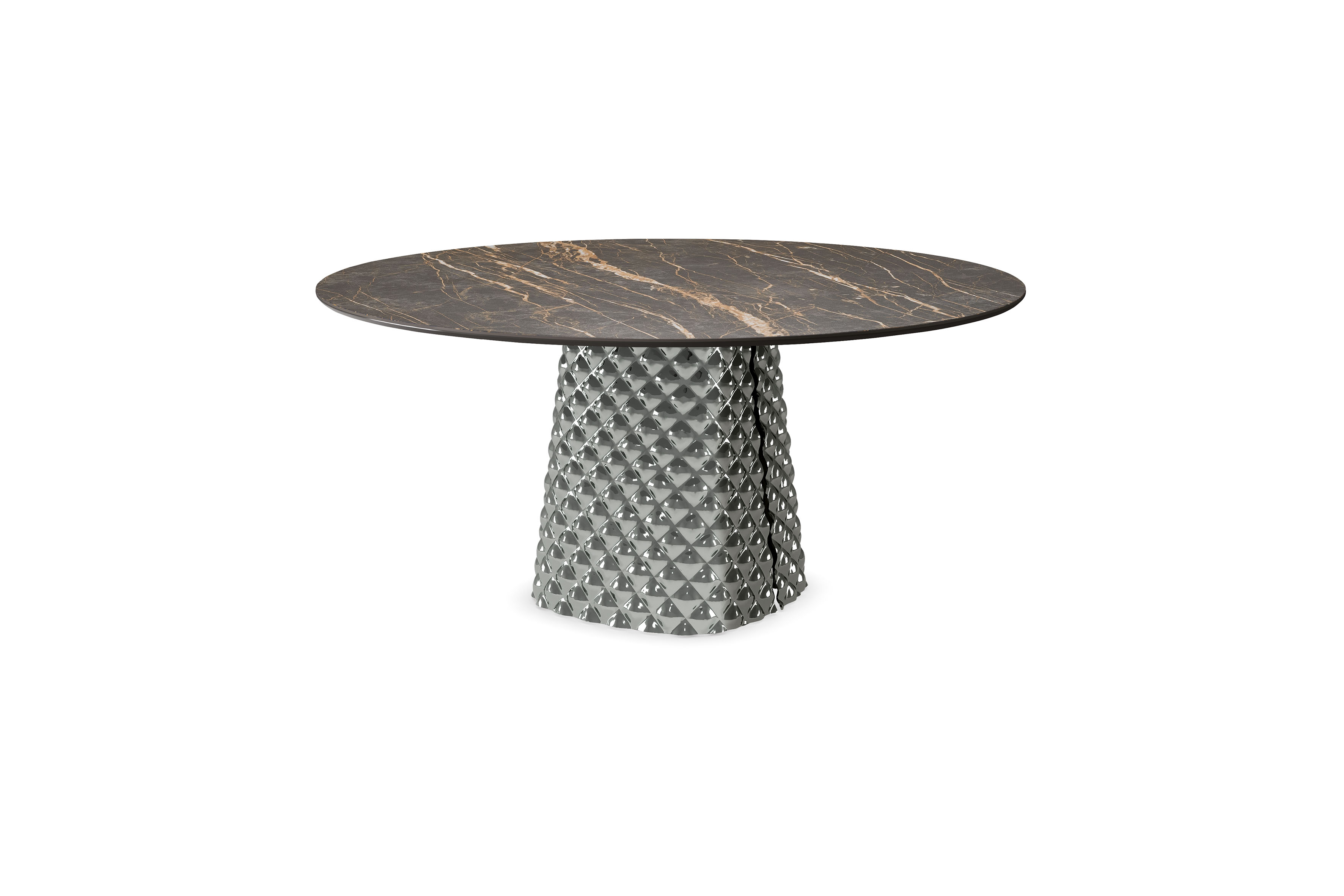 Cattelan Italia BOTERO KERAMIK Esstisch • Keramikplatte • rundBOTERO – Vielseitiger Designer-Esstisch mit Keramikplatte Der Botero Keramik rund verkörpert die perfekte Synthese aus organischer Form, handwerklicher Raffinesse und italienischer Materialkultur. Seine sinnliche Linienführung erinnert an die skulpturale Ästhetik des Künstlers Fernando Botero – harmonische Rundungen und monumentale Präsenz, umgesetzt in modernem Design. Die Basis des Tisches besteht aus Polymer mit Lehm-Spachtel-Optik (Argile), die in traditioneller Handarbeit aufgetragen wird. In Kombination mit der luxuriösen Keramik-Marmi-Platte in verschiedenen Natursteinoptiken entsteht ein faszinierendes Spiel aus Struktur, Farbe und Glanz. Erhältlich in vier Größen als runde Variante, oder mit rechteckigen, elliptischen oder organisch geschwungenen Tischplatten (separates Produkt in unserem Shop) – ist der Botero Keramik ideal für anspruchsvolle Wohn- und Essbereiche. Gestell aus Polymer mit Lehm-Spachtel-Optik (Argile) 3 Finishes: AR05 Cairo, AR09 Oslo, AR11 Marrakech Bodenplatte: Stahl, lackiert in Schwarz (GFM73), gaufriert Tischplatte: Keramik Marmi – 17 Oberflächen zur Auswahl4 verschiedene GrößenDesign by Cattelan Italia Studio, 2025Maße: Round Ø100 x 73 cmRound Ø118 x 73 cmRound Ø140 x 73,5 cmRound Ø158 x 73,5 cmHinweis:Mehr Informationen zu den Größen der Gestelle finden Sie in der Cattelan Italia Broschüre - gerne beraten wir Sie auch persönlich. Bitte beachten Sie, dass die angezeigten Bilder Illustrationszwecken dienen und von dem tatsächlichen Endprodukt abweichen können.