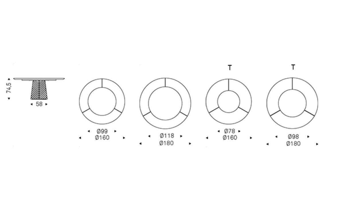 Während bei der Standardausführung der Keramikeinsatz fix in der Tischmitte montiert ist, besitzt die „T“-Version einen drehbaren Keramikeinsatz (Lazy Susan), der sich elegant und leichtgängig drehen lässt – ideal für gemeinsame Mahlzeiten und gesellige Runden.