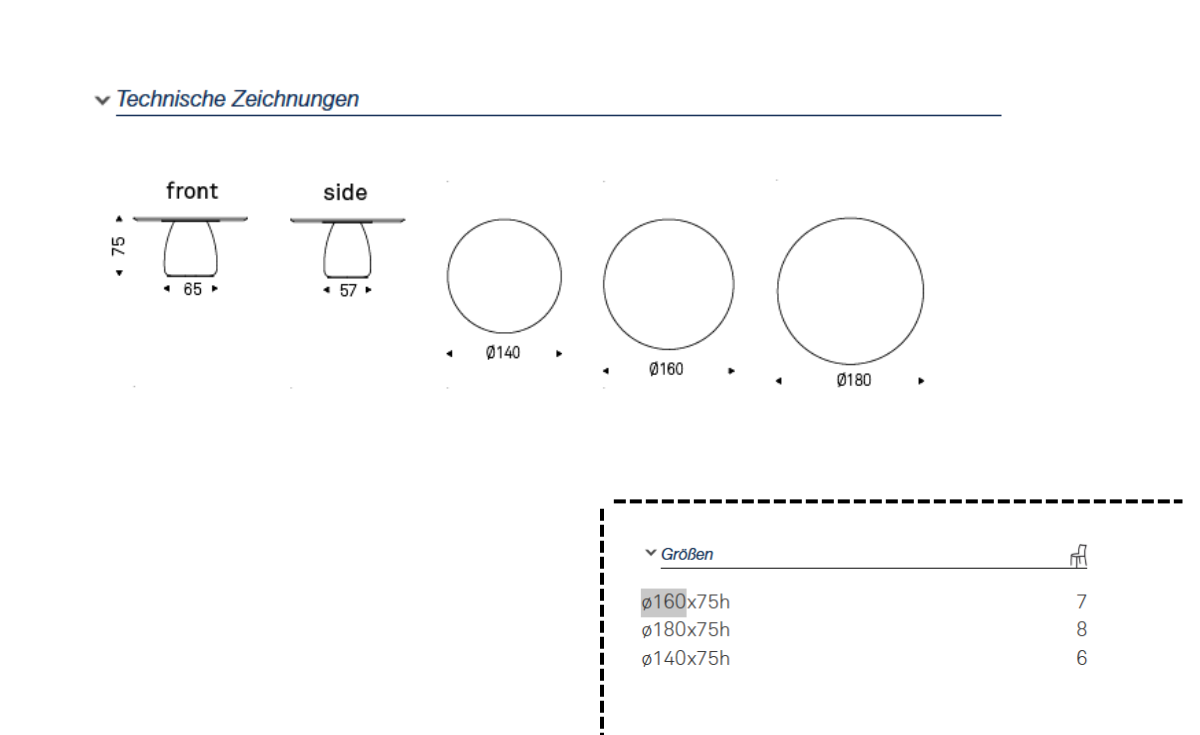 | Tischgröße: | Ø 140 cm, Ø 180 cm |