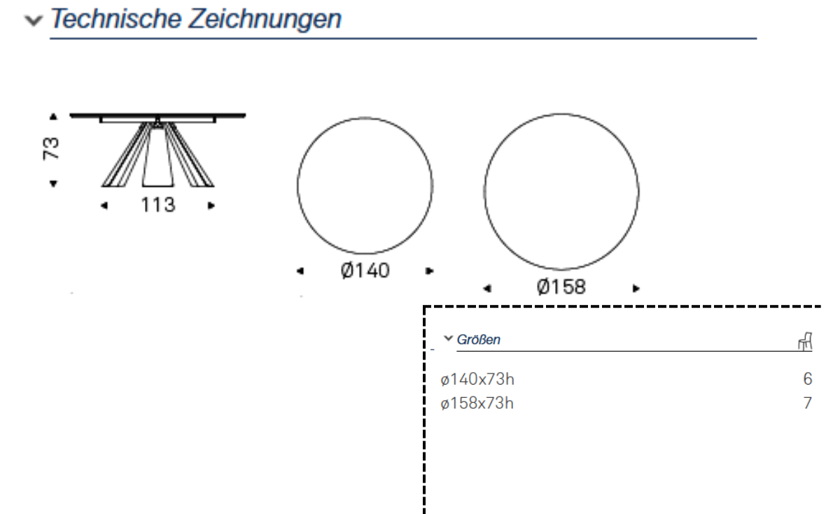 | Tischgröße: | Ø 140 cm, Ø 158 cm |
