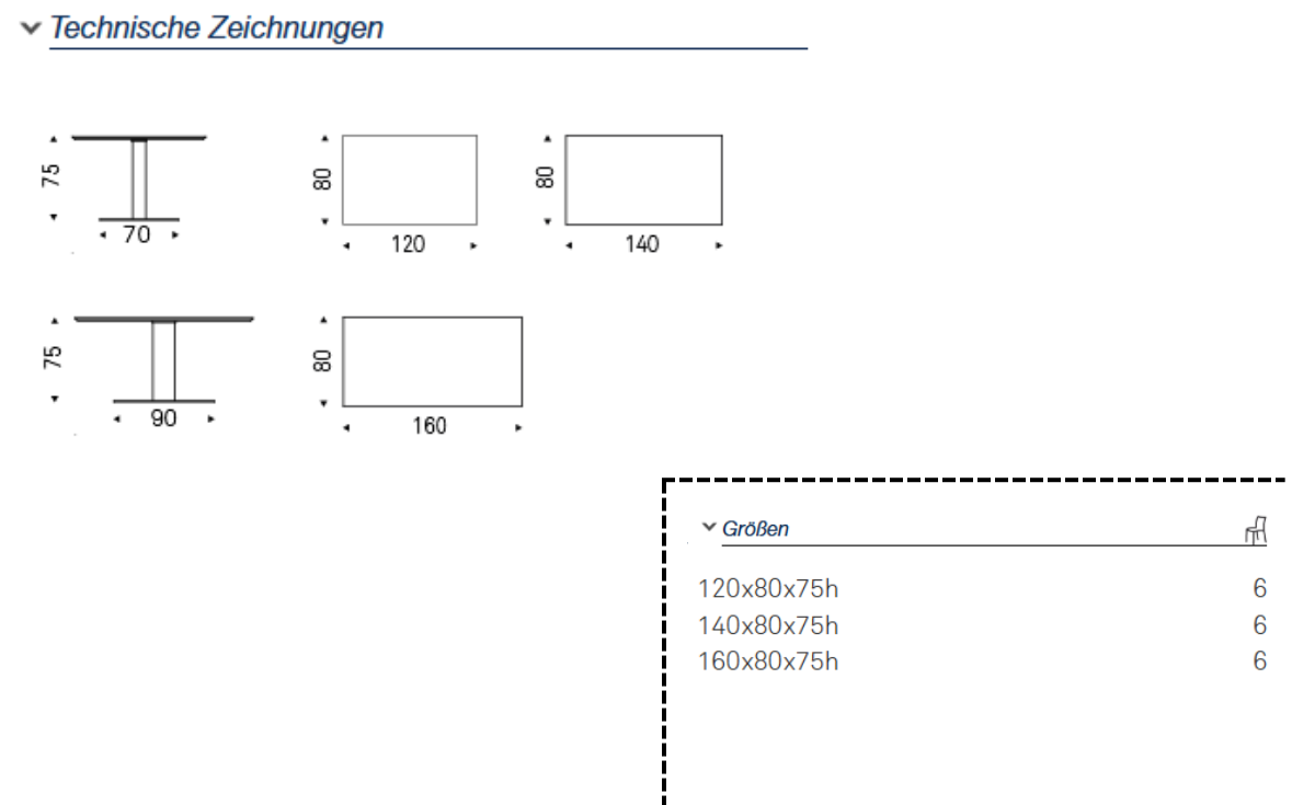 | Tischgröße: | 120 × 80 cm, 140 × 80 cm, 160 × 80 cm |
