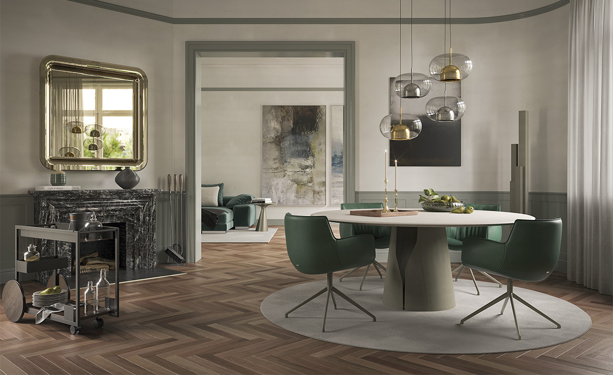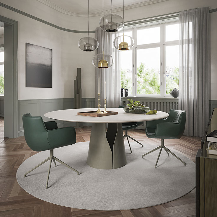 Der Giano Argile ist in mehreren Größen erhältlich und eignet sich ebenso für großzügige Wohn-Essbereiche wie für Design-Konferenzen oder ein stilvolles Boutique-Restaurant.