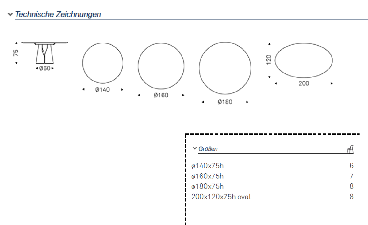 | Tischgröße: | Ø 140 cm, Ø 160 cm, Ø 180 cm |