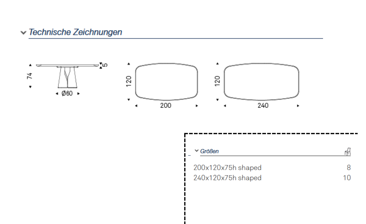 | Tischgröße: | 200 x 100 cm, 200 x 120 cm, 240 x 120 cm Geformt, 240 × 120 cm |