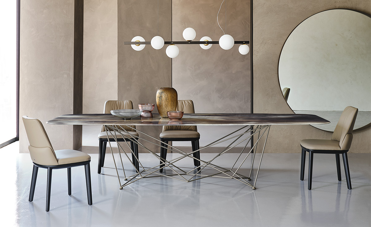 Der Gordon Crystalart ist ein moderner Designer-Esstisch, der die perfekte Balance zwischen technischer Präzision und ästhetischer Leichtigkeit verkörpert.