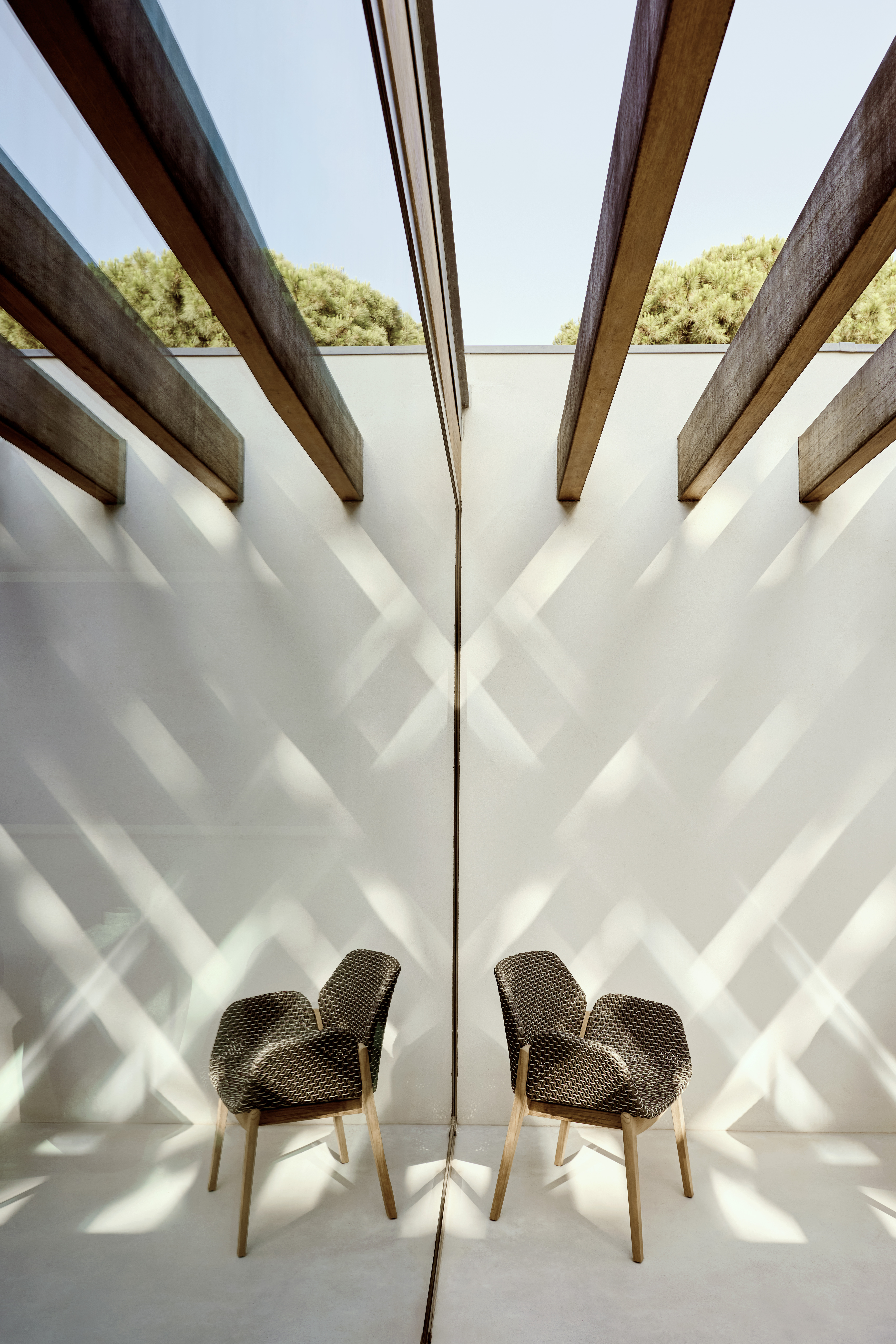 Die Kollektion CALADIO besticht durch ihre harmonische Linienführung und die Verbindung von traditioneller Flechtkunst mit modernem Design. Der Armlehnstuhl bietet eine ergonomisch geformte Sitzschale, die aus der exklusiven DEDON Faser gefertigt ist. Diese Faser wird in aufwendiger Handarbeit auf einen robusten, pulverbeschichteten Aluminiumrahmen geflochten, was dem Stuhl eine außergewöhnliche Stabilität bei gleichzeitig geringem Gewicht verleiht. Das Design ist darauf ausgelegt, sowohl in modernen als auch in klassischen Outdoor-Szenarien eine exklusive Figur zu machen.