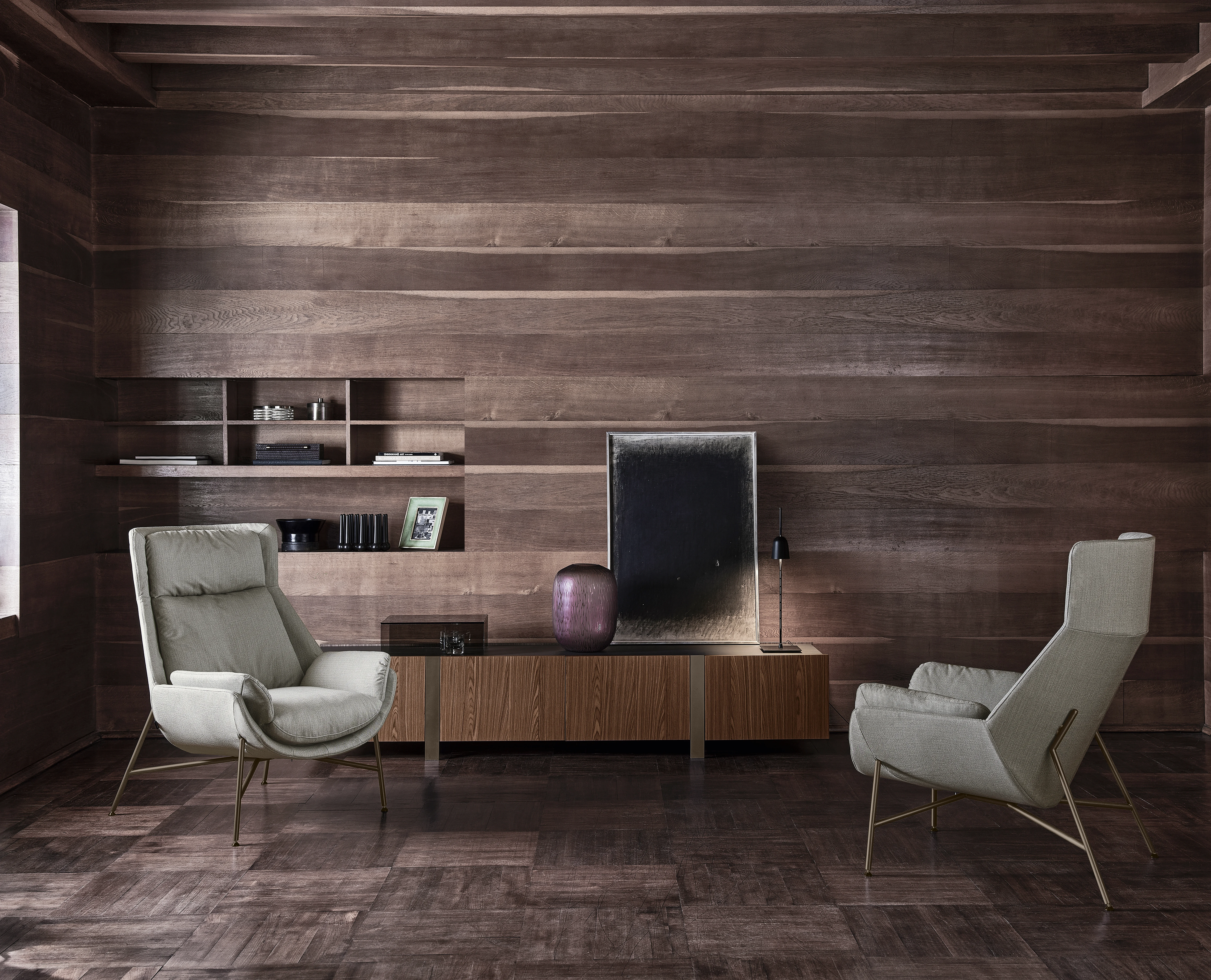 - Füße serienmäßig: Schwarzes Metall oder Light Brown; gegen Aufpreis Zinn