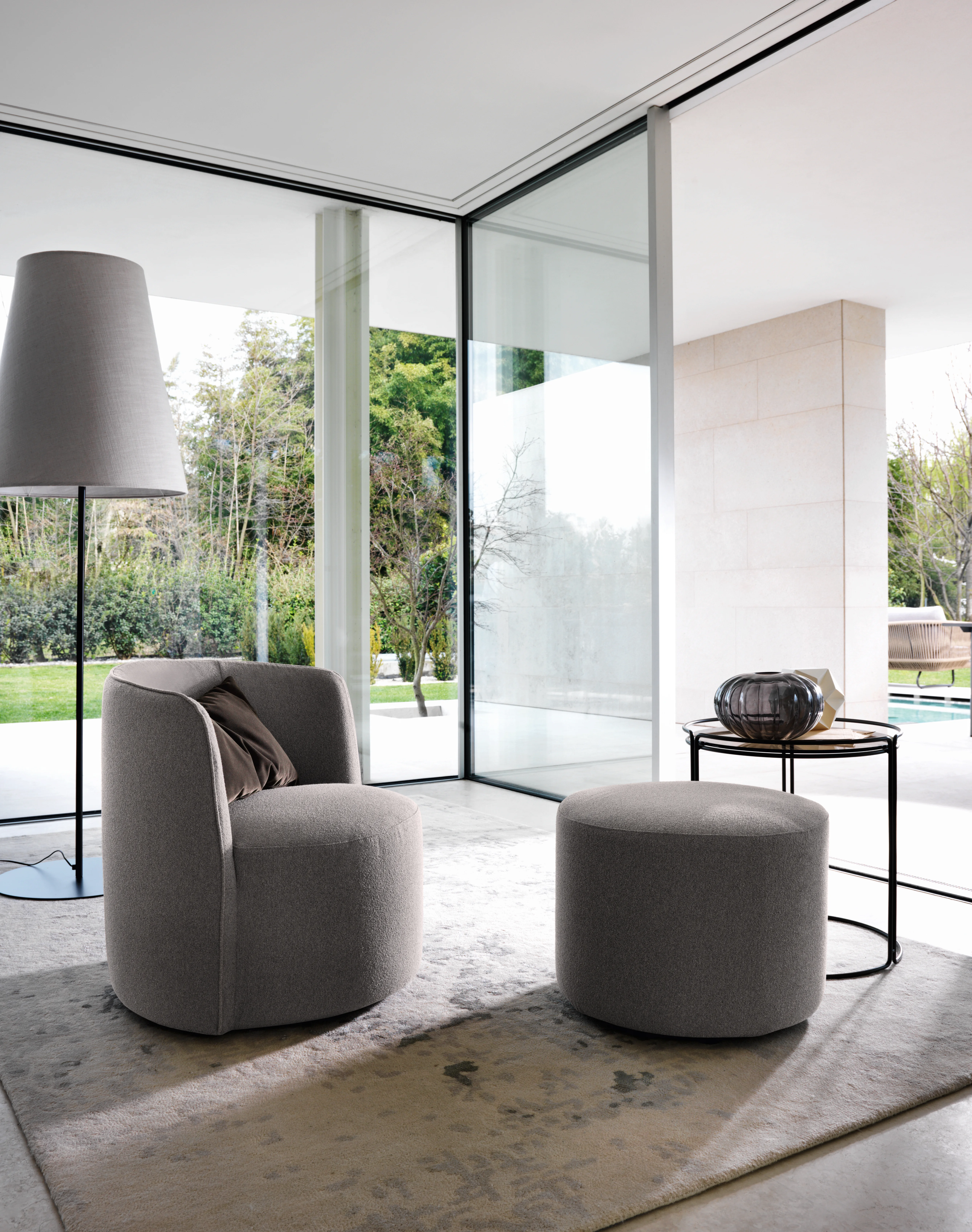 DITRE ITALIA ALTA SesselAlta von Ditre – Design in seiner schönsten Form Für Patrick Norguet ist ein Sofa weit mehr als nur eine Sitzgelegenheit – es ist der Mittelpunkt des Wohnens. Alta hebt das Konzept von Komfort auf ein neues Niveau und übersetzt es in eine Form, die weich, großzügig und einladend wirkt – auch optisch. Inspiriert von einem Baumwollknäuel entsteht das Volumen des Sofas durch ein horizontales Element, das das Material sanft zusammendrückt und seine Kontur definiert. Das Ergebnis ist eine Gestalt, die förmlich dazu einlädt, die Füße hochzulegen und vollkommen zu entspannen.Gestell / Struktur: Tragende Elemente aus Tannenholz. Struktur in Mehrschichtholzplatten der Klasse E1, Füllplatten aus HartfaserplattenFederung: Rückenlehne in Hartfaserplatte; Sitz in gekreuzten und mechanisch vorgespannten elastischen Bändern aus Propyplenfasern und LatexStoffe sind nicht abziehbarGewicht: 37 kgFüße serienmäßig: Schwarzes MetallMaße (B × T × H) : 104 x 93 x 79 cm Weitere Stoffe finden Sie im beigefügten Ditre-Stoffkatalog. Bei Interesse an nicht abgebildeten Varianten kontaktieren Sie uns gerne.Bitte beachten Sie, dass die angezeigten Bilder Illustrationszwecken dienen und von dem tatsächlichen Endprodukt abweichen können.
