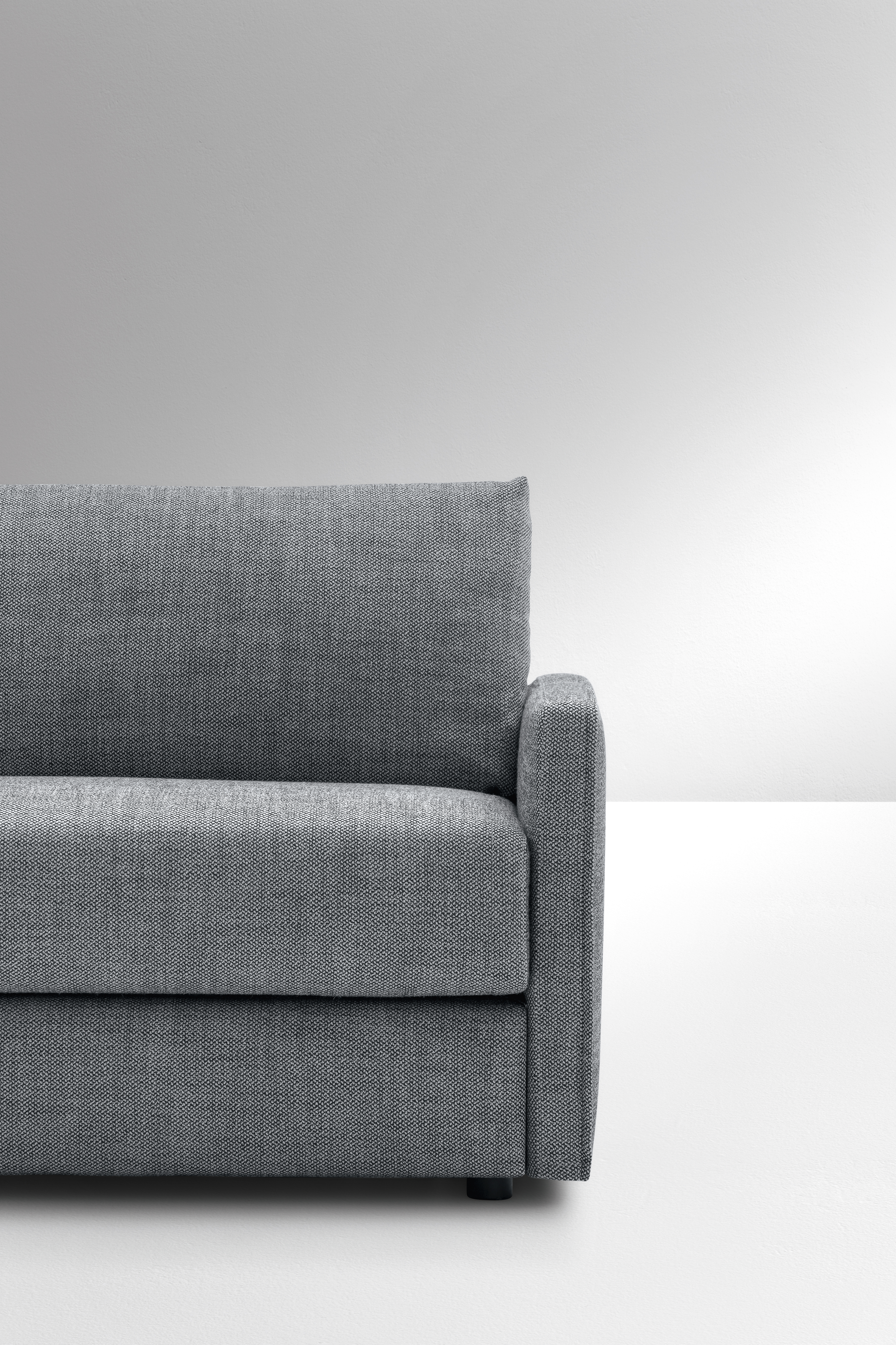 DITRE ITALIA FREEDOM 2.0 Schlafsofa • Armlehnen MFREEDOM 2.0 von Ditre – Design in seiner schönsten Form Freedom ist ein Bettsofa für jeden Tag – robust in seinen Proportionen und zugleich so komfortabel wie ein vollwertiges Sofa. Dank der Armlehnen in vier verschiedenen Breiten bietet es nicht nur höchsten Sitz- und Liegekomfort, sondern auch Spielraum für individuellen Ausdruck. Eine Lösung, die sich flexibel an persönlichen Stil und vorhandenen Wohnraum anpasst.Ob als gemütlicher Rückzugsort für entspannte Abende, als stilvolles Statement im Wohnzimmer oder als praktische Schlafmöglichkeit für Gäste: Freedom verbindet Design, Funktionalität und Wohlgefühl. Ein Sofa, das nicht nur zu Ihrem Zuhause passt, sondern es bereichert.Gestell / Struktur: Tragende Struktur aus lackiertem Stahl, einzelne Teile aus Tannenholz in verschiedenen Dicken, Holzspanplatten Klasse E1, Sperrholz oder Holzfasern oder Zellulose. Gestell vollständig mit Polyurethanschaumstoffplatten und Tecnoform bezogen. Federung: Rückenlehne in Holzspanplatten der Klasse E1 und Hartholz- oder Zellulosefaserplatten. Sitzfläche in gekreuzten elastischen Gurten des MechanismusBezüge abziehbarPolyurethanschaumstoffmatratze: 75 cm x 198 cm x 16 cmGewicht: 96 kgFüße serienmäßig: Schwarzes MetallMaße (B × T × H) : 117 x 102-218 x 88 cm Weitere Stoffe finden Sie im beigefügten Ditre-Stoffkatalog. Bei Interesse an nicht abgebildeten Varianten kontaktieren Sie uns gerne.Bitte beachten Sie, dass die angezeigten Bilder Illustrationszwecken dienen und von dem tatsächlichen Endprodukt abweichen können.