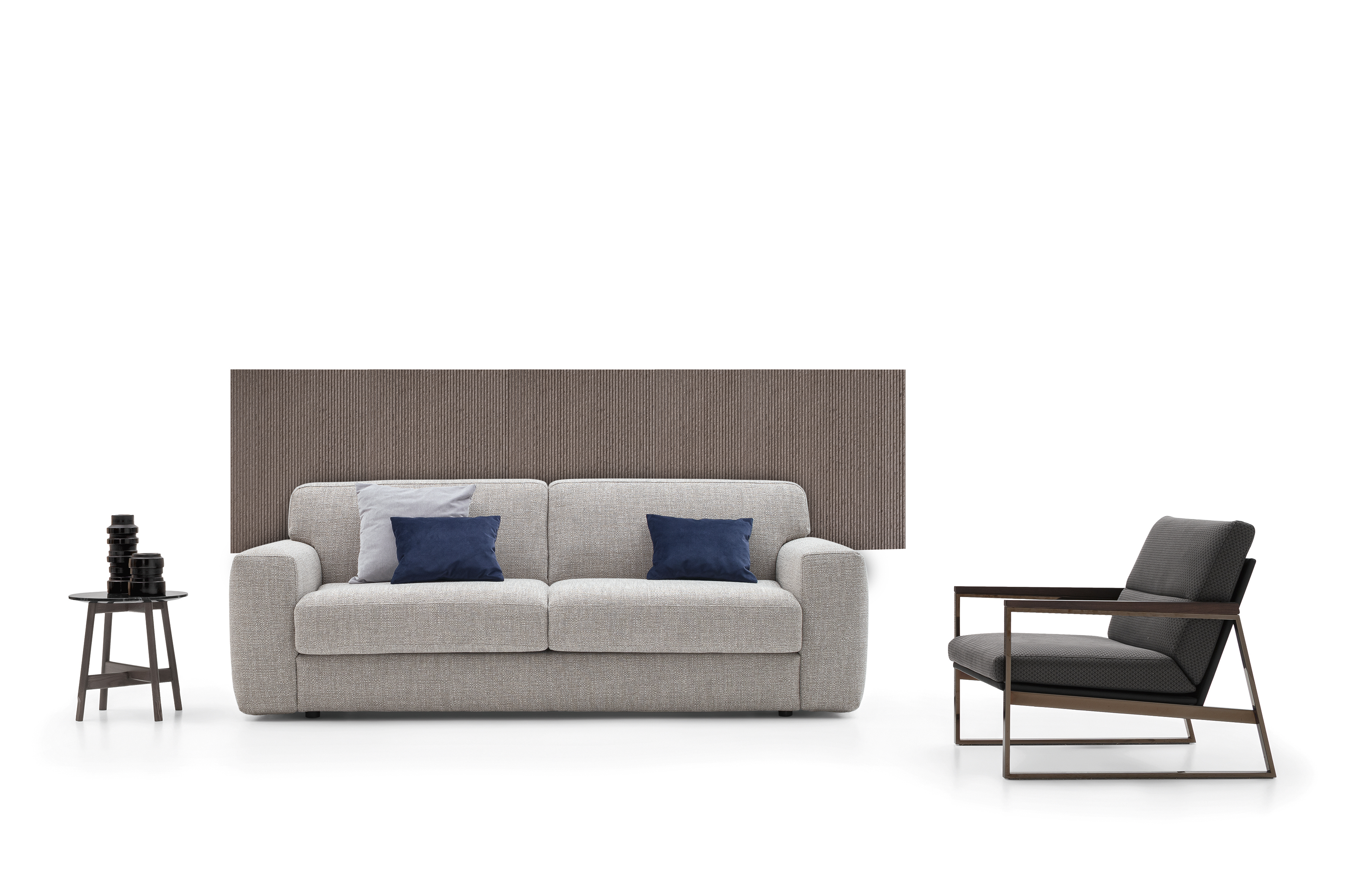 DITRE ITALIA FREEDOM 2.0 Schlafsofa • Armlehnen MFREEDOM 2.0 von Ditre – Design in seiner schönsten Form Freedom ist ein Bettsofa für jeden Tag – robust in seinen Proportionen und zugleich so komfortabel wie ein vollwertiges Sofa. Dank der Armlehnen in vier verschiedenen Breiten bietet es nicht nur höchsten Sitz- und Liegekomfort, sondern auch Spielraum für individuellen Ausdruck. Eine Lösung, die sich flexibel an persönlichen Stil und vorhandenen Wohnraum anpasst.Ob als gemütlicher Rückzugsort für entspannte Abende, als stilvolles Statement im Wohnzimmer oder als praktische Schlafmöglichkeit für Gäste: Freedom verbindet Design, Funktionalität und Wohlgefühl. Ein Sofa, das nicht nur zu Ihrem Zuhause passt, sondern es bereichert.Gestell / Struktur: Tragende Struktur aus lackiertem Stahl, einzelne Teile aus Tannenholz in verschiedenen Dicken, Holzspanplatten Klasse E1, Sperrholz oder Holzfasern oder Zellulose. Gestell vollständig mit Polyurethanschaumstoffplatten und Tecnoform bezogen. Federung: Rückenlehne in Holzspanplatten der Klasse E1 und Hartholz- oder Zellulosefaserplatten. Sitzfläche in gekreuzten elastischen Gurten des MechanismusBezüge abziehbarPolyurethanschaumstoffmatratze: 75 cm x 198 cm x 16 cmGewicht: 96 kgFüße serienmäßig: Schwarzes MetallMaße (B × T × H) : 117 x 102-218 x 88 cm Weitere Stoffe finden Sie im beigefügten Ditre-Stoffkatalog. Bei Interesse an nicht abgebildeten Varianten kontaktieren Sie uns gerne.Bitte beachten Sie, dass die angezeigten Bilder Illustrationszwecken dienen und von dem tatsächlichen Endprodukt abweichen können.