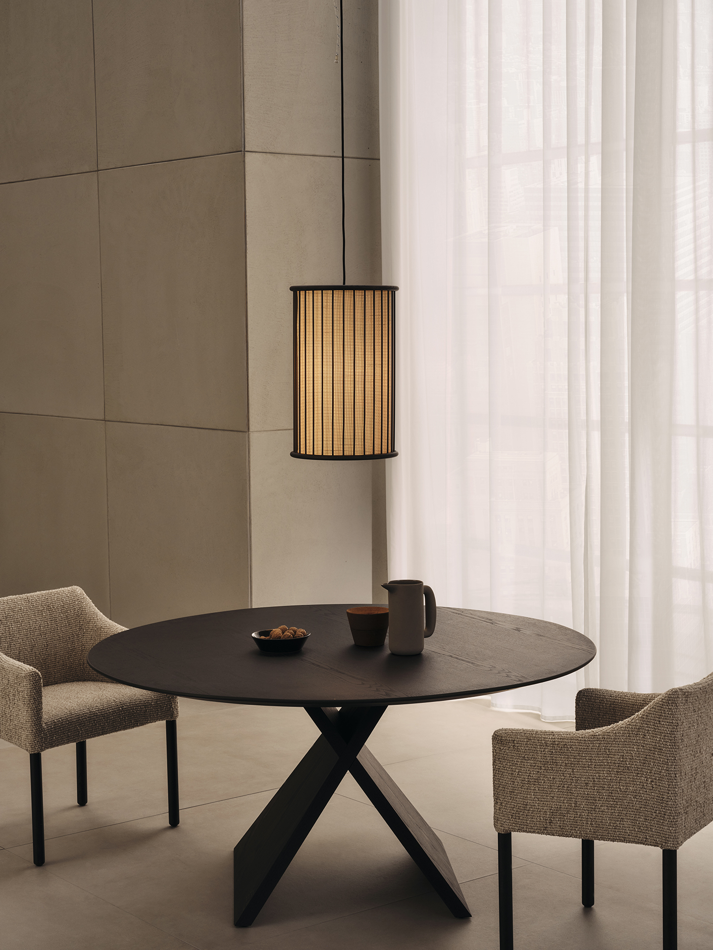 DePadova AVA Tisch- und BodenleuchteDie Kollektion AVA von DePadova: Die Leuchtenserie AVA von De Padova vereint natürliche Materialien, handwerkliche Präzision und zeitlose Eleganz zu einem außergewöhnlichen Lichtobjekt. Ob als Tischleuchte oder Hängeleuchte – AVA bringt eine warme, wohnliche Atmosphäre in jeden Raum und setzt stilvolle Akzente mit einer besonders harmonischen Ausstrahlung. Das filigrane Gestell aus massiver Esche, edel in Nussbaum gebeizt und mit einem transparenten Lack veredelt, verleiht der Leuchte eine hochwertige und natürliche Anmutung. Feine, vertikale Elemente aus braun lackiertem Metall unterstreichen die elegante Linienführung und schaffen eine leichte, beinahe schwebende Optik. Der kunstvoll gefertigte Lampenschirm aus gebleichtem Binsenrindengeflecht, verbunden mit feinem Baumwollgewebe, sorgt für ein sanftes, atmosphärisches Licht und macht jede AVA Leuchte zu einem besonderen Blickfang. Die Tisch- und Bodenleuchte verfügt über ein Stromkabel mit integriertem Dimmer, sodass sich die Lichtintensität individuell anpassen lässt.Gestell: massives Eschenholz, Nussbaum gebeizt, endbehandelt mit transparentem Lack. Vertikale Drähte aus braun lackiertem Metall.Lampenschirm: Ausgestopft mit gebleichtem Binsenrindengeflecht, verbunden mit Baumwollgewebe.Steuerung Tisch- und Bodenleuchte: Stromkabel mit integriertem DimmerSteuerung Hängeleuchte: Dimmer nicht in der Leuchte enthalten.Maße (B × T × H): 32 x 51 cmBitte beachten Sie, dass die angezeigten Bilder Illustrationszwecken dienen und von dem tatsächlichen Endprodukt abweichen können.