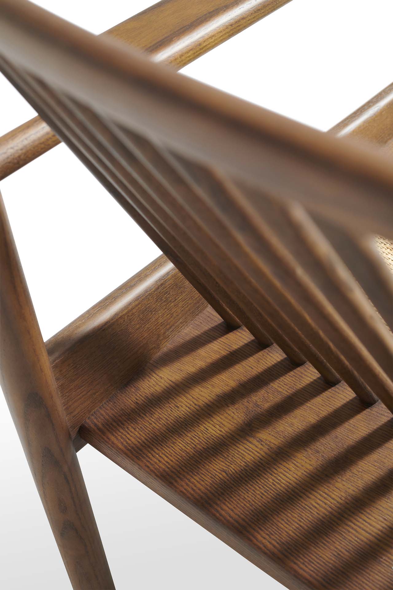 - Gestell: Massives Eschenholz, Nussbaum gebeizt, endbehandelt mit transparentem Lack