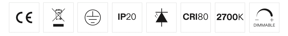 - WANDVERSION: Netzteil in der Leuchte eingesetzt (24V Output/Ausgang). Integrierter Metall-Touch-Dimmer, mit synchronisiertem Dimmen der beiden Lichtquellen.
