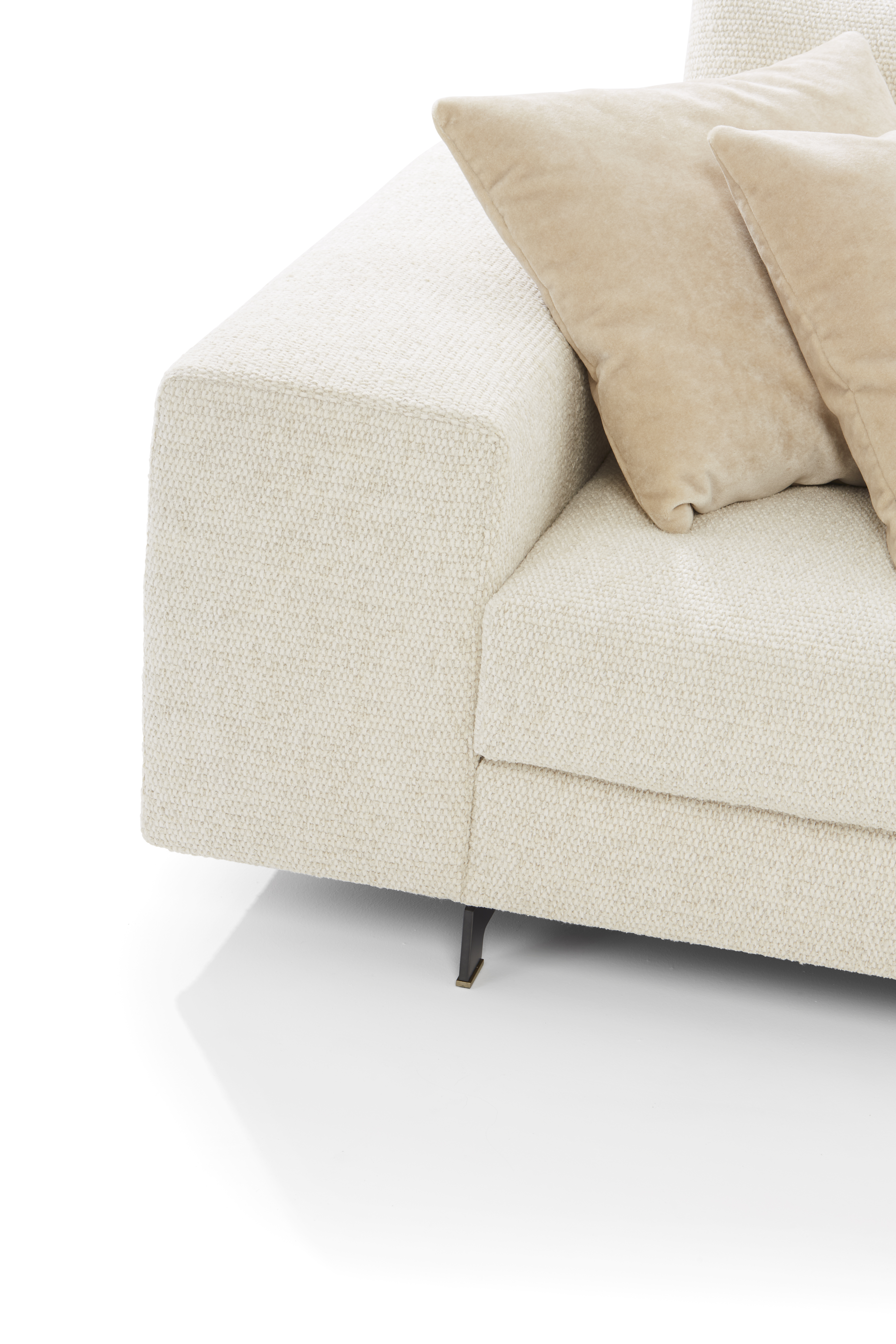 DePadova FLYING LANDSCAPE 25 Sofa • 2-Sitzer Die Kollektion FLYING LANDSCAPE von DePadova:Die modularen Sofas der Landscape-Kollektion werden mit der neuen Version Flying weiterentwickelt. Sie übernimmt die markante, quadratische Formensprache der Serie, interpretiert diese jedoch mit einer neuen, zeitgemäßen Linienführung. Flying zeichnet sich durch ein schlankeres Design aus: eine dünnere Sitzfläche, eine leichtere Konstruktion und höhere Füße verleihen dem Sofa eine besonders elegante und luftige Anmutung – stets im Zeichen des hochwertigen Made in Italy. Diese moderne Neuinterpretation macht das Sofa ideal kombinierbar mit den passenden Holz- und Marmorcouchtischen der Kollektion. Ob als Mittel-, Eck- oder Abschlusselement oder frei im Raum stehend – Flying passt sich flexibel unterschiedlichen Wohnkonzepten an. Ständig wandelbare Geometrien, ergänzt durch einen Pouf und Kissen mit Gänsedaunenfüllung, schaffen eine einladende, kommunikative Atmosphäre.Sollten Sie Interesse an weiteren Sofaelementen oder Produkten aus der Kollektion FLYING LANDSCAPE haben, steht Ihnen unser Kundenservice jederzeit gerne zur Verfügung. Unser Team berät Sie kompetent und findet gemeinsam mit Ihnen die passende Lösung. Weitere Informationen entnehmen Sie bitte der beigefügten Informationsbroschüre.Gestell Holz und Stahl mit elastischen GurtenUntergestelle Stahlblech, endbehandelt mit Acryl-Lack, grau, unverarbeiteter Effekt. Füße aus Thermoplast Farbton Messing. Mittige und Verbindungsfüße aus Stahlblech, endbehandelt mit Acryl-Lack, grau, unverarbeiteter Effekt, mit verstellbarem Thermoplast-Fuß. Polsterung Polyurethanschaum unterschiedlicher Dichte und Polyesterwatte. Bei den FR- Versionen (Fire Resistant), die auf Anfrage erhältlich sind, entsprechen die Polstermaterialien den geltenden Bestimmungen. Sitzkissen Gänsedaunen mit Kern aus Polyurethanschaum und Überzug aus Baumwollgewebe. Rückenlehnenkissen Gänsedaunen, gemischt mit Polyesterfasern, mit halbstarrem Kern, Überzug aus Baumwollgewebe. Bezug technisch abnehmbarer Stoffbezug oder fester Lederbezug. Nackenrolle Polyurethanschaum und Polyesterwatte mit Überzug aus Polyestersamt.Maße (B × T × H): 220 x 105 x 60 cm Detaillierte Stoffübersichten, Kataloge sowie Material- und Pflegehinweise für Natursteine und Leder finden Sie in den beigefügten Unterlagen.Bitte beachten Sie, dass die angezeigten Bilder Illustrationszwecken dienen und von dem tatsächlichen Endprodukt abweichen können.