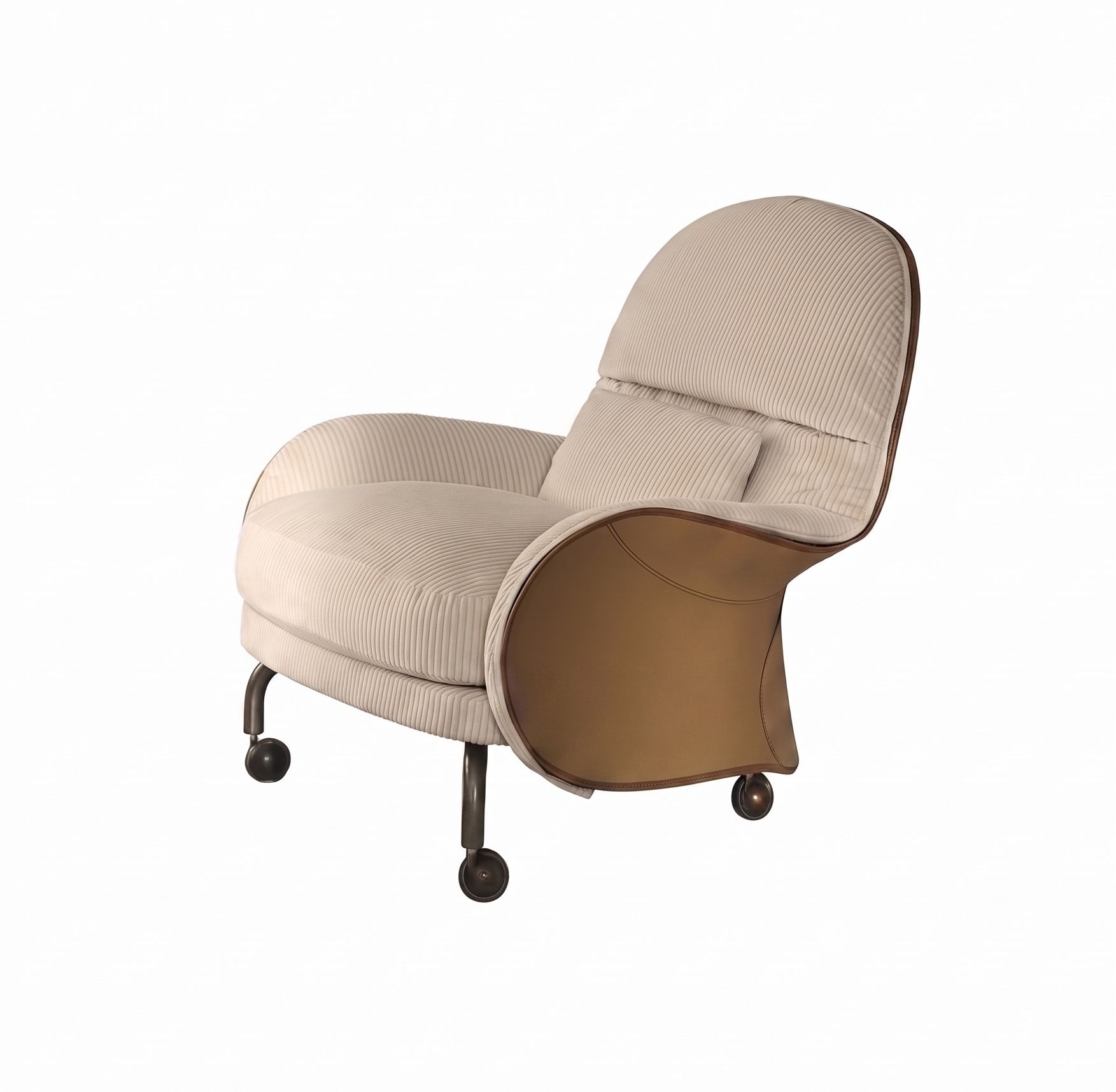 DePadova AMI SesselDie Kollektion AMI von DePadova: Dieser umhüllende Sessel begeistert mit seiner eleganten, harmonisch vollen Form und lädt auf den ersten Blick zum Verweilen ein. Die hochwertige Polsterung aus Polyurethanschaum unterschiedlicher Dichte sorgt für außergewöhnlichen Sitzkomfort und eine langlebige Formbeständigkeit. Durch seine weichen Konturen und die sorgfältig abgestimmten Proportionen vereint dieses Modell stilvolle Ästhetik mit einem besonders behaglichen Sitzgefühl. Erhältlich als Sessel oder kleine Couch, passt sich dieses Möbelstück flexibel unterschiedlichen Wohn- und Objektbereichen an und setzt sowohl als Einzelstück als auch in Kombination ein exklusives Designstatement.Gestell: Stahl mit elastischen Gurten und Paneel in Birkenschichtholz (zertifiziert Klasse E1, CARB P2 / TSCA Title VI)Füße: Thermoplastisches Material oder optional DrehmechanismusPolsterung: Polyurethanschaum unterschiedlicher Dichte und Polyesterwatte, mit Überzug aus Polyestersamt. Bei den FR-Versionen (Fire Resistant), die auf Anfrage erhältlich sind, entsprechen die Polstermaterialien den geltenden Bestimmungen.Sitzhöhe: 42 cmBezug technisch abnehmbarer Stoffbezug (außer D4 Cusio & D6 Sivas) oder fester Leder-oder SamtbezugMaße (B × T × H): 80 x 76 x 72 cm Aufgrund der umfangreichen und exklusiven Stoffauswahl von DePadova sehen Sie hier lediglich eine Auswahl der verfügbaren Stoff- und Lederbezüge. Sollten Sie Interesse an weiteren Varianten haben, steht Ihnen unser Kundenservice jederzeit gerne zur Verfügung und berät Sie kompetent und individuell.Detaillierte Stoffübersichten, Kataloge sowie Material- und Pflegehinweise für Natursteine und Leder finden Sie in den beigefügten Unterlagen.Bitte beachten Sie, dass die angezeigten Bilder Illustrationszwecken dienen und von dem tatsächlichen Endprodukt abweichen können.