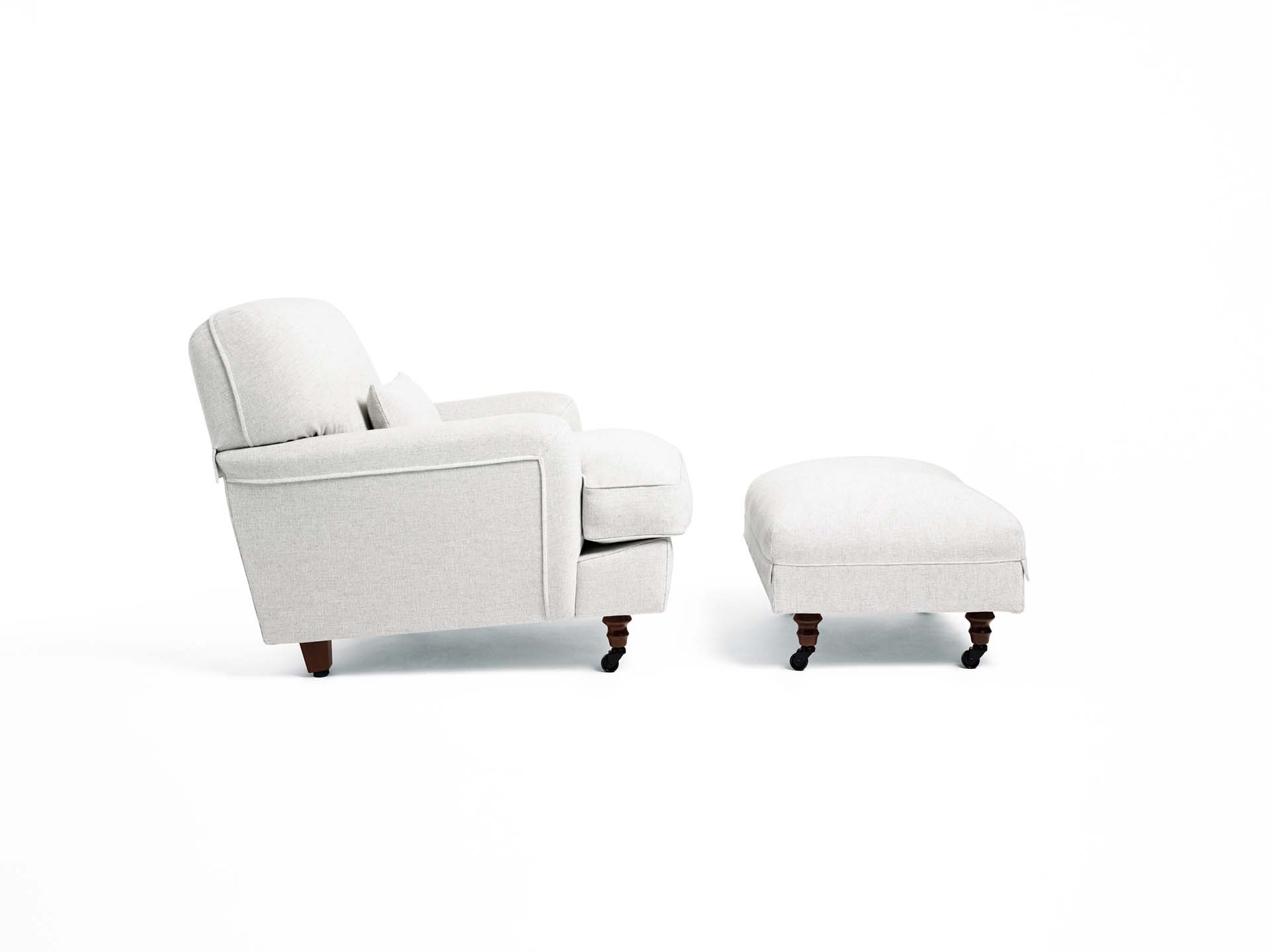DePadova RAFFLES Sofa • verschiedene GrößenDie Kollektion RAFFLES von DePadova: Britisches Lebensgefühl und klassische englische Interieurs. Der von Vico Magistretti entworfene Raffles ist das ideale Sofa zum Entspannen. Mit seiner tiefen, komfortablen Sitzfläche, den entspannten Linien und der zeitlosen, universellen Eleganz vereint es Stil und Komfort auf perfekte Weise. Auch die feinsten Details, wie die gedrechselten Holzfüße mit dezenten Lenkrollen, sind harmonisch ins Design integriert. Die Gänsedaunenkissen mit vollständig abnehmbaren Bezügen bieten höchsten Sitzkomfort für jedes Alter. Neben den zwei- und dreisitzigen Sofaversionen umfasst die Kollektion auch einen Sessel sowie einen passenden Hocker.Materialien Gestell: Holz mit elastischen Gurten. Füße Vorne Buchenholzfüße anilingefärbt auf Nussbaum gebeizt, endbehandelt mit transparentem Lack, mit Rollen (außer Modell RA/P3). Hinter- und Mittelfüße aus Massiv Buchenholz anilingefärbt auf Nussbaum gebeizt endbehandelt mit transparentem Lack, mit verstellbarem Thermoplast-Gleitfuß. Polsterung: Polyurethanschaum unterschiedlicher Dichte und Polyesterwatte, mit Überzug aus Polyestersamt und Baumwollgewebe. Bei den FRVersionen (Fire Resistant), die auf Anfrage erhältlich sind, entsprechen die Polstermaterialien den geltenden Bestimmungen. Sitzkissen - Version mit Gänsedaunen: Gänsedaunen mit Überzug aus Baumwollgewebe. Sitzkissen - Version mit Memory Schaum: Memory Schaum, Polyurethanschaum und Polyesterwatte mit Überzug aus Baumwollgewebe. Nur für den britischen Markt sind die in Memory-Schaum vorgesehenen Teile aus Polyurethanschaum hergestellt. Nierenkissen Polyesterwatte mit Überzug aus Polyestersamt. Sitzhöhe: 45 cmBezug technisch abnehmbarer Stoffbezug oder fester Samtbezug. Aufgrund der umfangreichen und exklusiven Stoffauswahl von DePadova sehen Sie hier lediglich eine Auswahl der verfügbaren Stoff- und Lederbezüge. Sollten Sie Interesse an weiteren Varianten haben, steht Ihnen unser Kundenservice jederzeit gerne zur Verfügung und berät Sie kompetent und individuell.Detaillierte Stoffübersichten, Kataloge sowie Material- und Pflegehinweise für Natursteine und Leder finden Sie in den beigefügten Unterlagen.Bitte beachten Sie, dass die angezeigten Bilder Illustrationszwecken dienen und von dem tatsächlichen Endprodukt abweichen können.