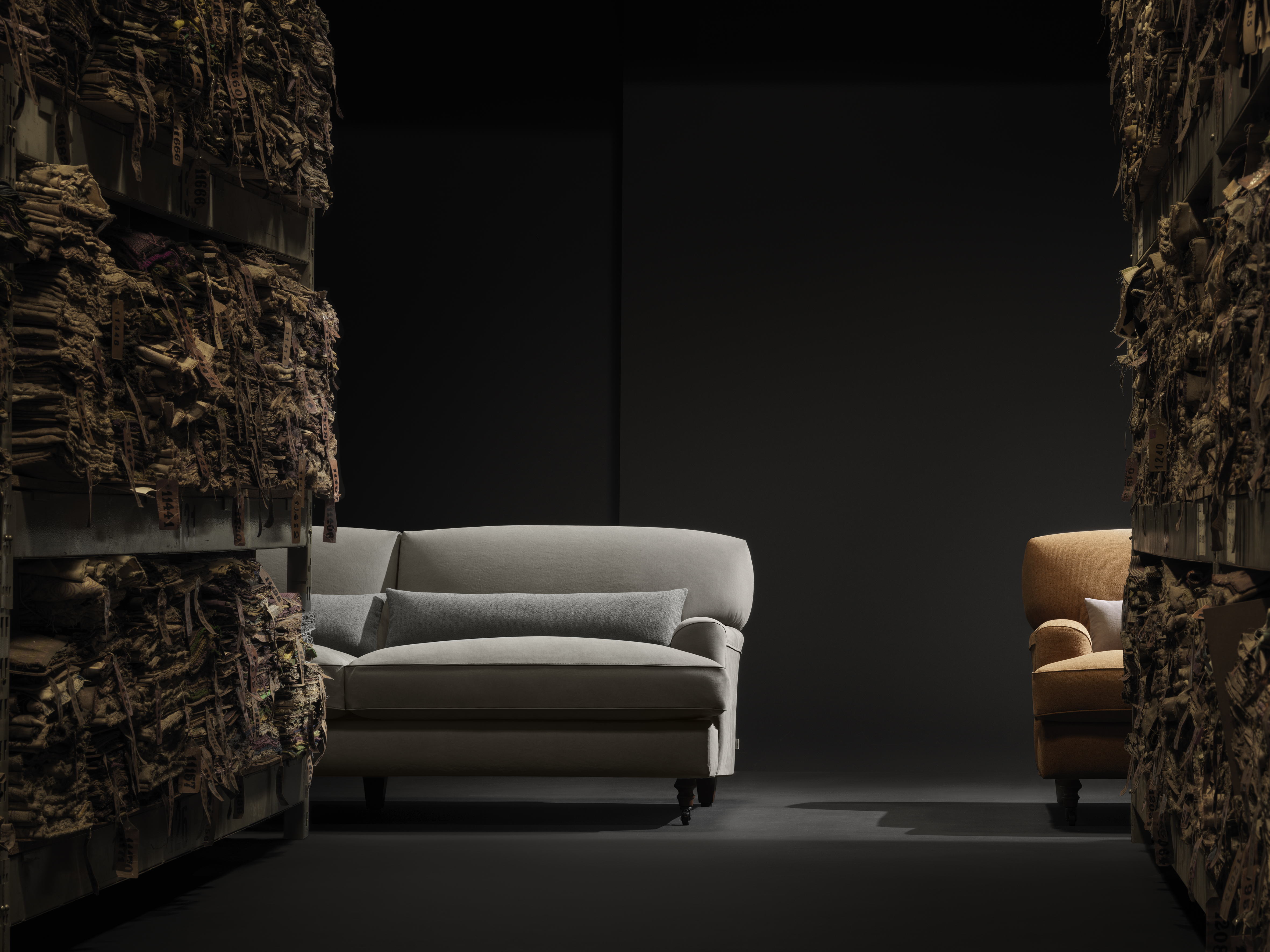 - Polsterung: Polyurethanschaum unterschiedlicher Dichte und Polyesterwatte, mit Überzug aus Polyestersamt und Baumwollgewebe. Bei den FRVersionen (Fire Resistant), die auf Anfrage erhältlich sind, entsprechen die Polstermaterialien den geltenden Bestimmungen.