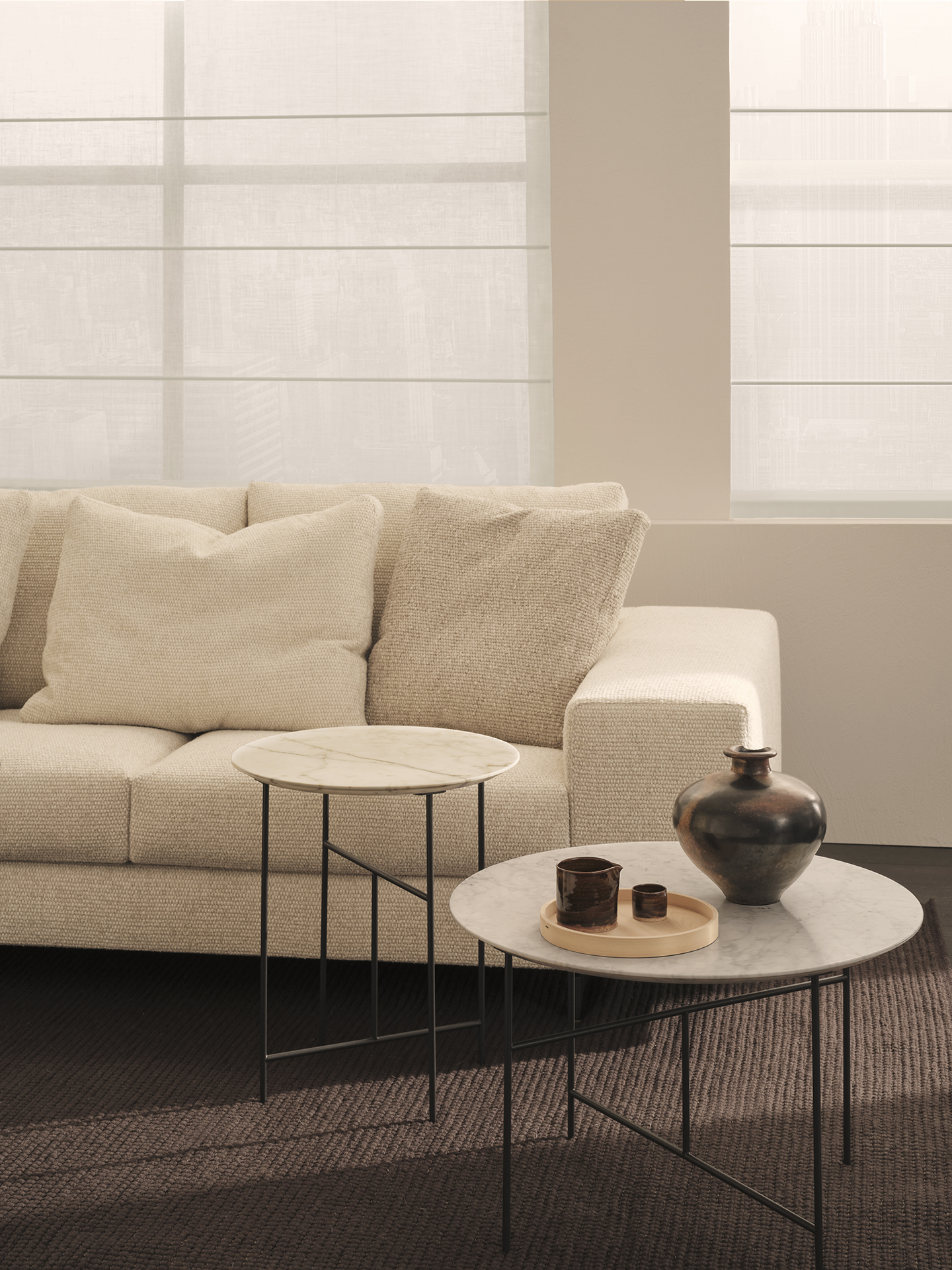 DePadova BLENDY Sofa • verschiedene GrößenDie Kollektion BLENDY von DePadova: Die filigranen Linien des Designers Omi Tahara folgen einem klaren Konzept: eine umhüllende Struktur, die die Schlichtheit der Sitzmöbel elegant ausbalanciert. Große, weiche Kissen setzen einen harmonischen Kontrast und machen das Sofa besonders komfortabel sowie flexibel. Ein passender Sessel rundet die Kollektion stimmig ab.Materialien Gestell: Stahl mit elastischen Gurten. Füße: Stahl mit mattschwarzer Pulverlackierung. Verstellbarer Thermoplastgleitfuß.Polsterung Polyurethanschaum unterschiedlicher Dichte und Polyesterwatte, mit Überzug aus Polyestersamt. Bei den FRVersionen (Fire Resistant), die auf Anfrage erhältlich sind, entsprechen die Polstermaterialien den geltenden Bestimmungen. Sitzkissen: Gänsedaunen mit Kern aus Polyurethanschaum unterschiedlicher Dichte und Überzug aus Baumwollgewebe. Rückenlehnenkissen: Gänsedaunen mit Überzug aus Baumwollgewebe. Sitzhöhe: 44 cm1. Kurzer oder langer technisch abnehmbarer Stoffbezug oder fester Leder-oder Samtbezug; oder 2. fester Außenbezug (Strukturschale) in Leder (E Mistral); fester Innenbezug (für Sitzkissen und Rückenlehne) in Stoff oder Leder. Langer Bezug abnehmbarer StoffbezugAusnahmen Stoff abziehbar: D4 Cusio & D6 Sivas Aufgrund der umfangreichen und exklusiven Stoffauswahl von DePadova sehen Sie hier lediglich eine Auswahl der verfügbaren Stoff- und Lederbezüge. Sollten Sie Interesse an weiteren Varianten haben, steht Ihnen unser Kundenservice jederzeit gerne zur Verfügung und berät Sie kompetent und individuell.Detaillierte Stoffübersichten, Kataloge sowie Material- und Pflegehinweise für Natursteine und Leder finden Sie in den beigefügten Unterlagen.Bitte beachten Sie, dass die angezeigten Bilder Illustrationszwecken dienen und von dem tatsächlichen Endprodukt abweichen können.