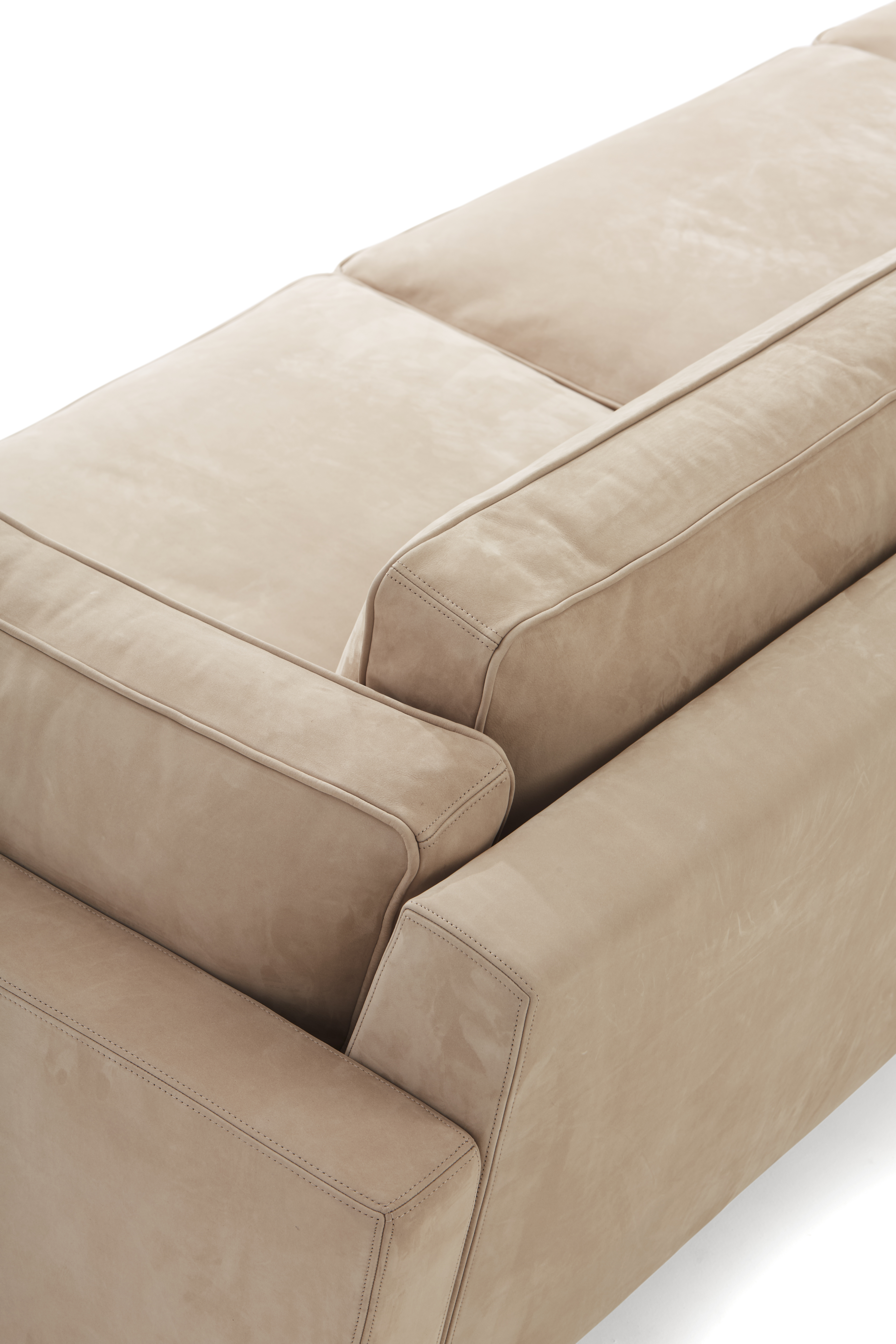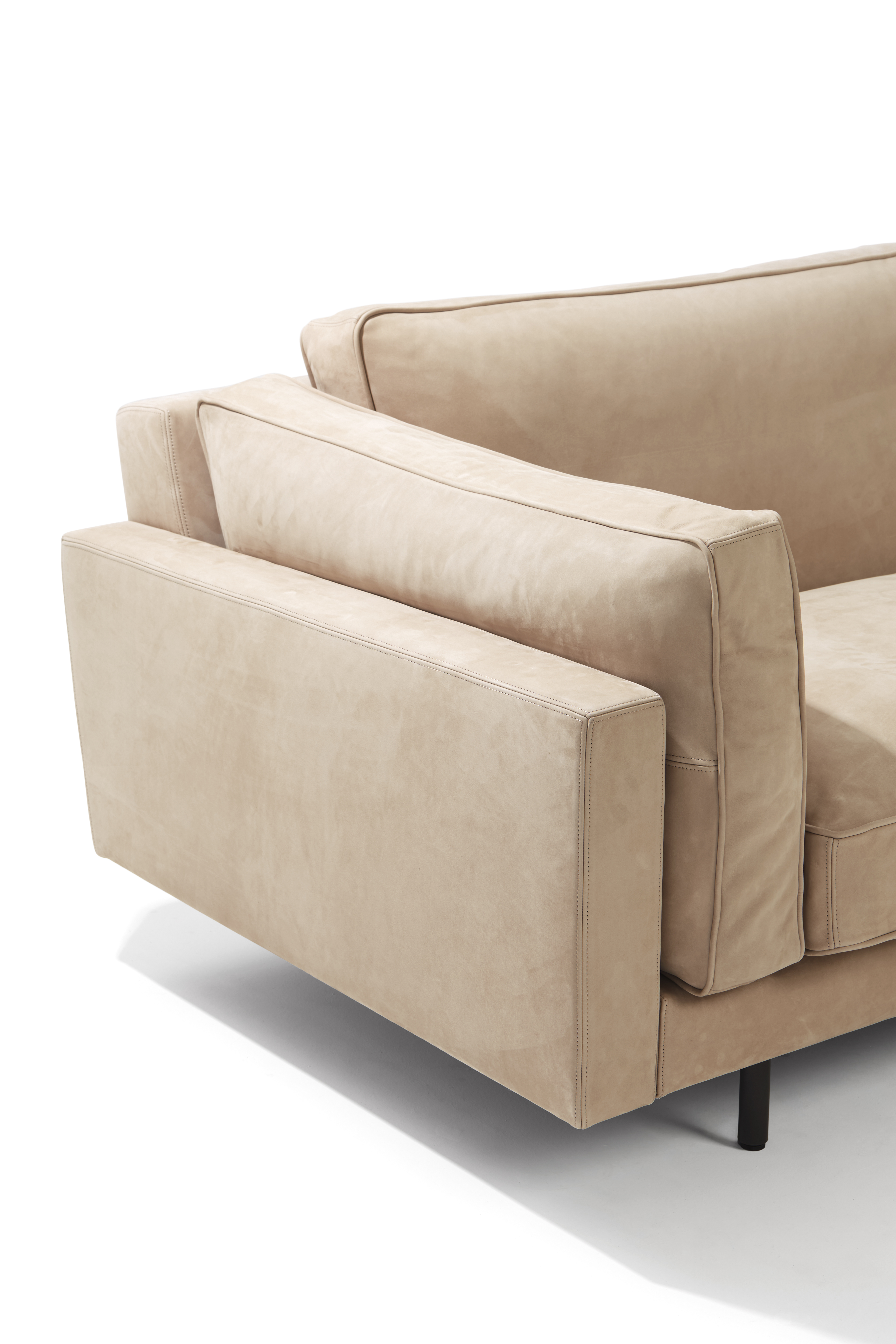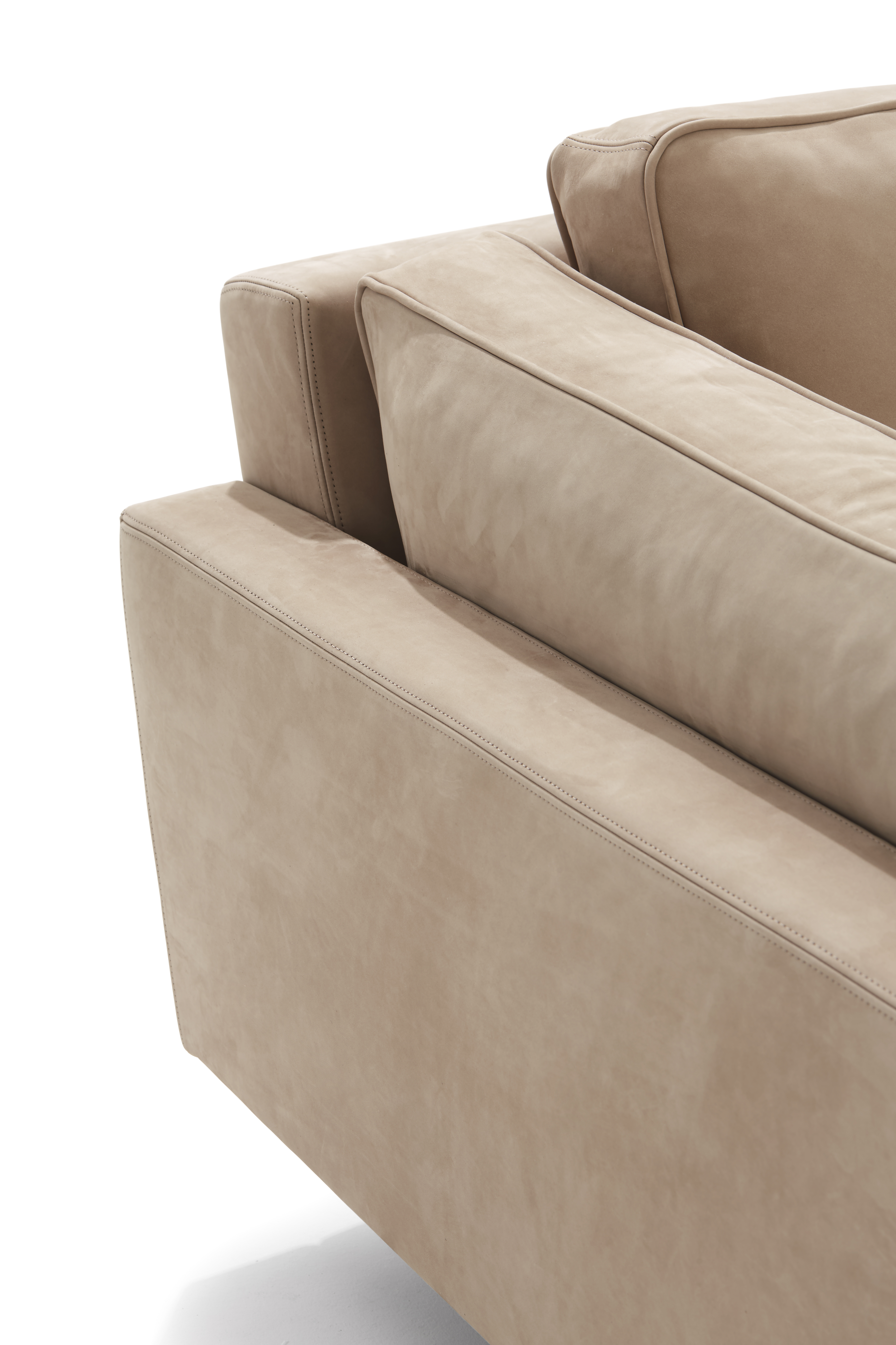 DePadova SQUARE 16 Sofa • 2-SitzerDie Kollektion SQUARE 16 von DePadova: Klare Geometrien und präzise Linien prägen das Erscheinungsbild des Sofas Square 16. Das Design interpretiert das historische Erbe von De Padova neu – reduziert, harmonisch und zeitlos. Eine außergewöhnlich komfortable, weiche und gleichmäßige Sitzfläche trifft auf filigrane Stahlfüße mit Anklängen an die Sixties. Charakteristische Nähte betonen die klaren Kanten und verleihen dem Sofa Struktur. Ob in Stoff oder Leder, insbesondere als modulare Kombination, passt Square 16 flexibel zu unterschiedlichsten Wohnraumsituationen.Sollten Sie Interesse an weiteren Sofaelementen oder Produkten aus der Kollektion SQUARE 16 haben, steht Ihnen unser Kundenservice jederzeit gerne zur Verfügung. Unser Team berät Sie kompetent und findet gemeinsam mit Ihnen die passende Lösung. Weitere Informationen entnehmen Sie bitte der beigefügten Informationsbroschüre.Gestell: Stahl und Holz mit elastischen Gurten.Füße: Stahl mit gunmetalfarbener Pulverlackierung oder aus massivem Eschenholz gebeizt Nussbaum Canaletto, endbehandelt mit transparentem Lack. Polsterung Polyurethanschaum unterschiedlicher Dichte und Polyesterwatte, mit Überzug aus Polyestersamt. Bei den FRVersionen (Fire Resistant), die auf Anfrage erhältlich sind, entsprechen die Polstermaterialien den geltenden Bestimmungen.Version mit Gänsedaunen: Sitzkissen in Gänsedaunen mit Polyurethanschaumkern, mit Überzug aus Polyesterwatte und Baumwollgewebe. Armlehnenkissen in Gänsedaunen mit Polyurethanschaumkern, mit Überzug aus Baumwollgewebe. Rückenlehnenkissen in Gänsedaunen gemischt mit Polyesterfaser, mit Überzug aus Baumwollgewebe. Version mit Memory-Schaum: Sitzkissen in Memory Schaum, Polyurethanschaum und Polyesterwatte mit Überzug aus Baumwollgewebe. Rücken- und Armlehnenkissen in Gänsedaunen gemischt mit Polyesterfaser mit Polyurethanschaumkern, mit Überzug aus Baumwollgewebe. Nur für den britischen Markt sind die in Memory-Schaum vorgesehenen Teile aus Polyurethanschaum hergestellt. Bezug technisch abnehmbarer Stoffbezug oder fester Leder-oder Samtbezug. Aufgrund der umfangreichen und exklusiven Stoffauswahl von DePadova sehen Sie hier lediglich eine Auswahl der verfügbaren Stoff- und Lederbezüge. Sollten Sie Interesse an weiteren Varianten haben, steht Ihnen unser Kundenservice jederzeit gerne zur Verfügung und berät Sie kompetent und individuell. Maße (B × T × H): 218 x 98 x 74 cm Bitte beachten Sie, dass die angezeigten Bilder Illustrationszwecken dienen und von dem tatsächlichen Endprodukt abweichen können.