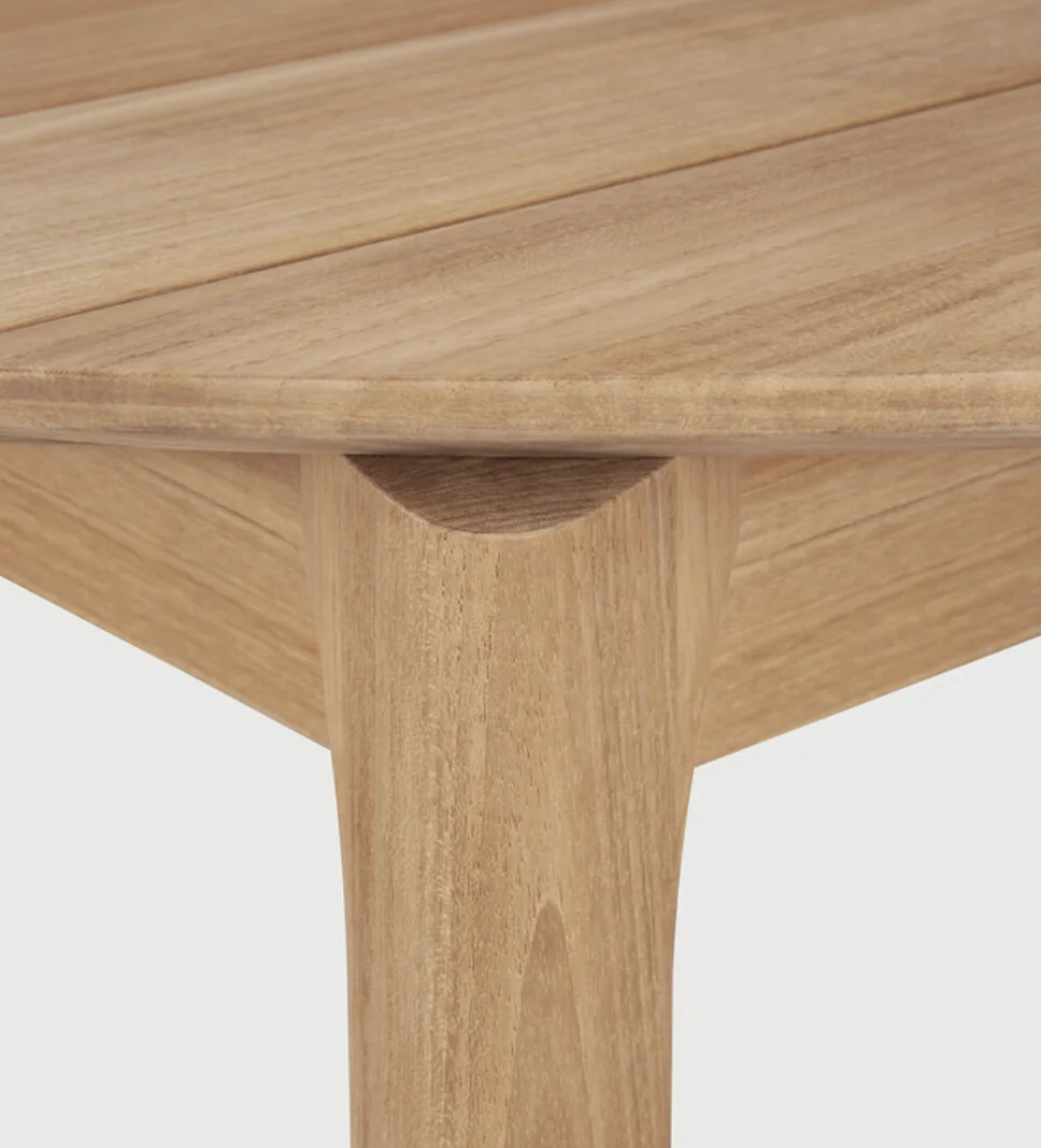 ETHNICRAFT BOK Esstisch Outdoor • Teakholz • ausziehbarInspiriert von der geschwungenen Eleganz von Ziegenhörnern vereint die Bok-Kollektion skulpturale Raffinesse mit moderner Handwerkskunst. Das Ergebnis: ein Esstisch, der nicht nur durch seine anmutige Silhouette besticht, sondern auch durch seine durchdachte Funktionalität. Wie der dazugehörige Stuhl ist auch der Bok-Esstisch ein echtes Statement-Piece. Seine organisch fließende Form wirkt leicht und lässig, während die solide Konstruktion aus massivem Teakholz für Stabilität und Langlebigkeit sorgt – drinnen wie draußen. Die fein genutete Tischplatte ist nicht nur ein Blickfang, sondern auch besonders praktisch: Sie lässt Regenwasser einfach abfließen und macht den Tisch zu einem idealen Begleiter für das Leben im Freien. Ob für gesellige Abende oder stille Momente – der Bok-Tisch vereint zeitloses Design mit echter Alltagstauglichkeit und wird so schnell zum Lieblingsort im Zuhause. Für den Einsatz im Außenbereich geeignet.Maximale Belastbarkeit: 170 kgLänge: 200 cm (erweitert bis zu 300 cm)Breite:100 cm Höhe: 76 cm Eigengewicht: 75 kg Ausziehbar Bequeme Sitzkapazität: bis zu 8 Personen Material: TeakNicht gebürstetAusgezogen erhöht sich die Sitzplatzkapazität von 8 auf 12 Personen.Weitere Informationen finden Sie hier: Pflegehinweise für die Outdoor-Kollektionen Bitte beachten Sie, dass die angezeigten Bilder Illustrationszwecken dienen und von dem tatsächlichen Endprodukt abweichen können. Um die natürliche Schönheit des Materials zu unterstreichen, wird dieses Produkt aus Teakholz ohne jegliche Oberflächen- oder Schutzbehandlung geliefert. Entworfen von Alain van Havre