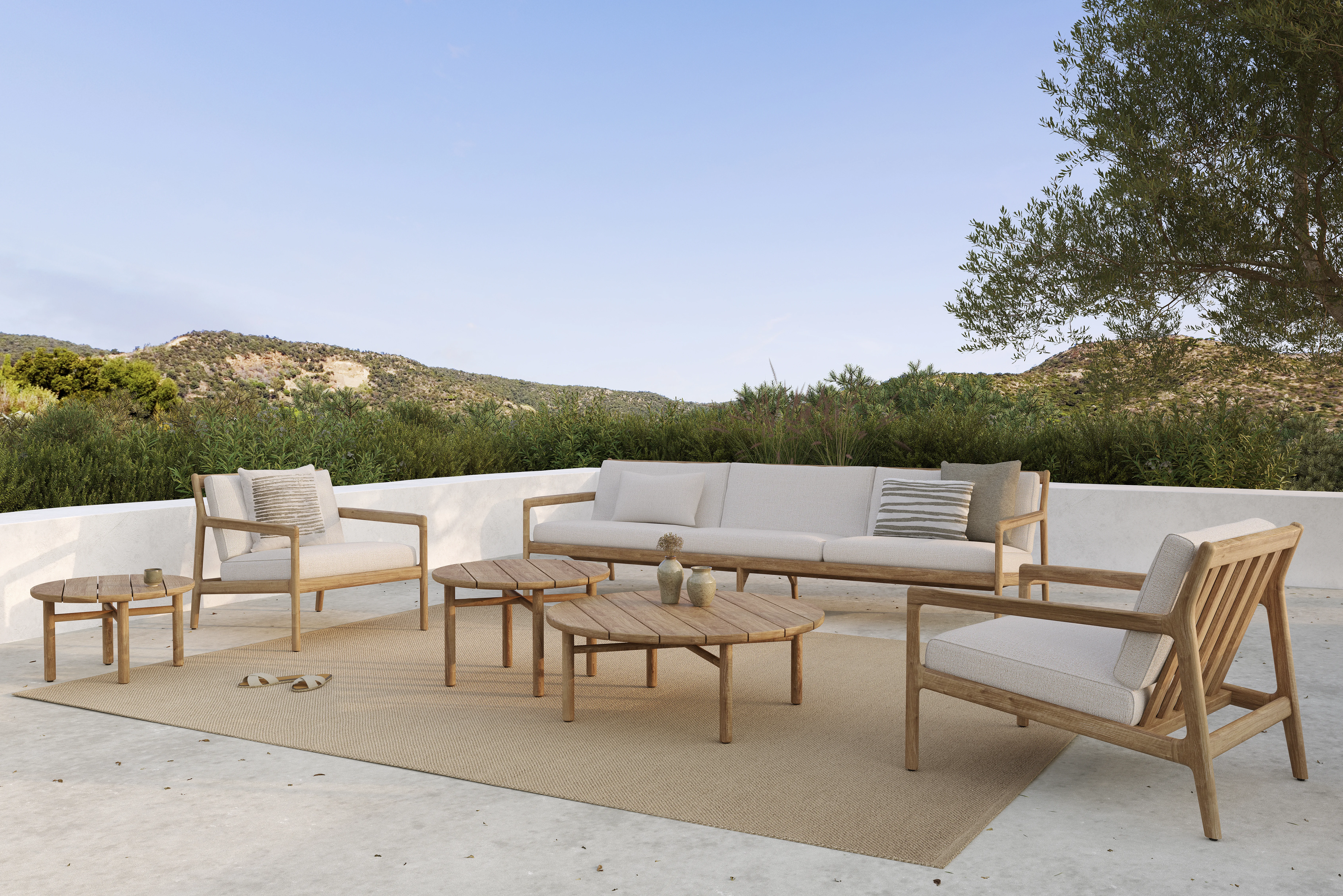 ETHNICRAFT JACK WOVEN Loungesessel Outdoor Stilvoll aus jedem Blickwinkel – die Jack-Kollektion begeistert mit üppigen Formen und sanften Kurven. Der Loungesessel Jack bringt mit seinem edlen italienischen Webstoff auf Sitzfläche und Rückenlehne eine besondere Eleganz in Ihr Zuhause oder auf Ihre Terrasse. Der wetterfeste Cord macht ihn vielseitig einsetzbar – drinnen wie draußen. Jackvereint klassische Linien mit modernem Flair; jedes Detail wurde mit größter Sorgfalt gefertigt, um höchsten Komfort und zeitlose Eleganz zu garantieren. Für den Einsatz im Außenbereich geeignet.Maximale Belastung: 135 kgLänge: 63cmBreite: 76 cmHöhe: 70 cmEigengewicht: 7,5 kgBeine: Nylon-GleiterAus massivem Teak gefertigt Polsterung BeigeDie gewebte Sitzfläche ist schimmel-, allergie-, bakterien-, und chorresistentHauptmaterial: TeakholzBodenschoner: JaArt der Polsterung: 100% Polypropylen Weitere Informationen finden Sie hier: Pflegehinweise für die Outdoor-Kollektionen Bitte beachten Sie, dass die angezeigten Bilder Illustrationszwecken dienen und von dem tatsächlichen Endprodukt abweichen können. Entworfen von Jacques Deneef