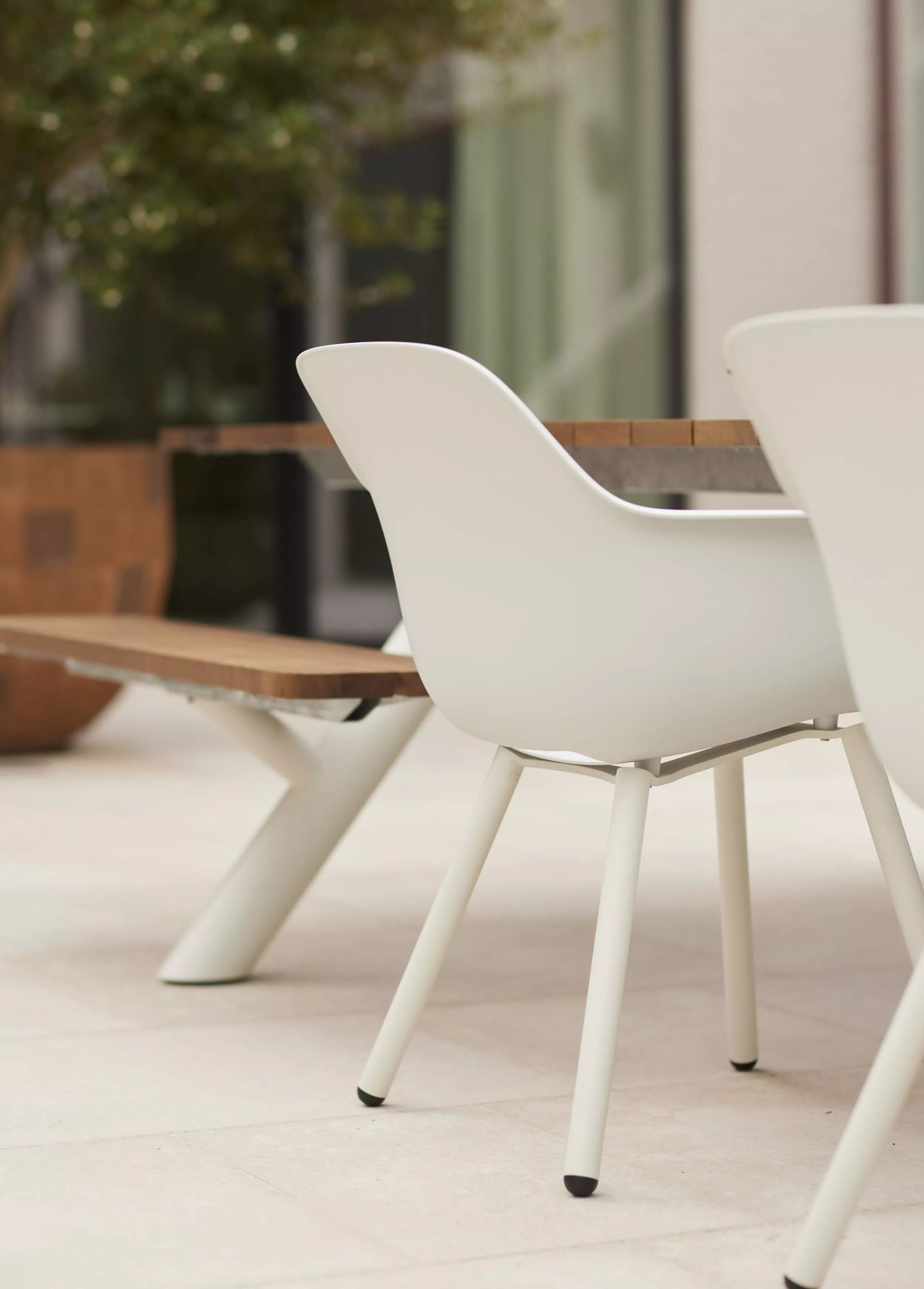 EXTREMIS HOPPER combo 360 Die Hopper Combo bietet eine innovative Kombination aus dem Komfort einer Bank auf der einen Seite und der praktischen Funktionalität von Stühlen auf der anderen Seite. Sie vereint das Beste aus beiden Welten und bietet damit eine vielseitige Sitzlösung. Wenn Sie zusätzlichen Komfort wünschen, stehen Ihnen ein paar Captain's Chairs zur Verfügung, die das Sitzerlebnis noch angenehmer gestalten. Diese Kombination aus Bänken und Stühlen bietet eine flexible Lösung für verschiedene Sitzbedürfnisse. Durch die fest angebrachten Bänke ist es einfach, seitlich in die Sitzgelegenheit zu gelangen, ohne die Beine anheben zu müssen. Dies erhöht die Zugänglichkeit und den Komfort für alle Benutzer. Die offene Seite der Hopper Combo ermöglicht eine hohe Flexibilität, da sie Platz für Rollstühle oder Kinderhochstühle bietet. Somit ist sie eine einladende Lösung für verschiedene Nutzergruppen und Situationen.Robuste, haltbare MaterialienOptionale Rückenlehnen und Kissen erhältlichHolzelemte, Sitzfläche aus Iroko-Hartholz, Hellwood oder beschichtetRahmen und Beine aus Stahl (versch. Beschichtungen)Für bis zu 10 PersonenBarrierefrei für Rollstuhlnutzer*innen Maße (B x T x H): 358 x 123 x 74 cm